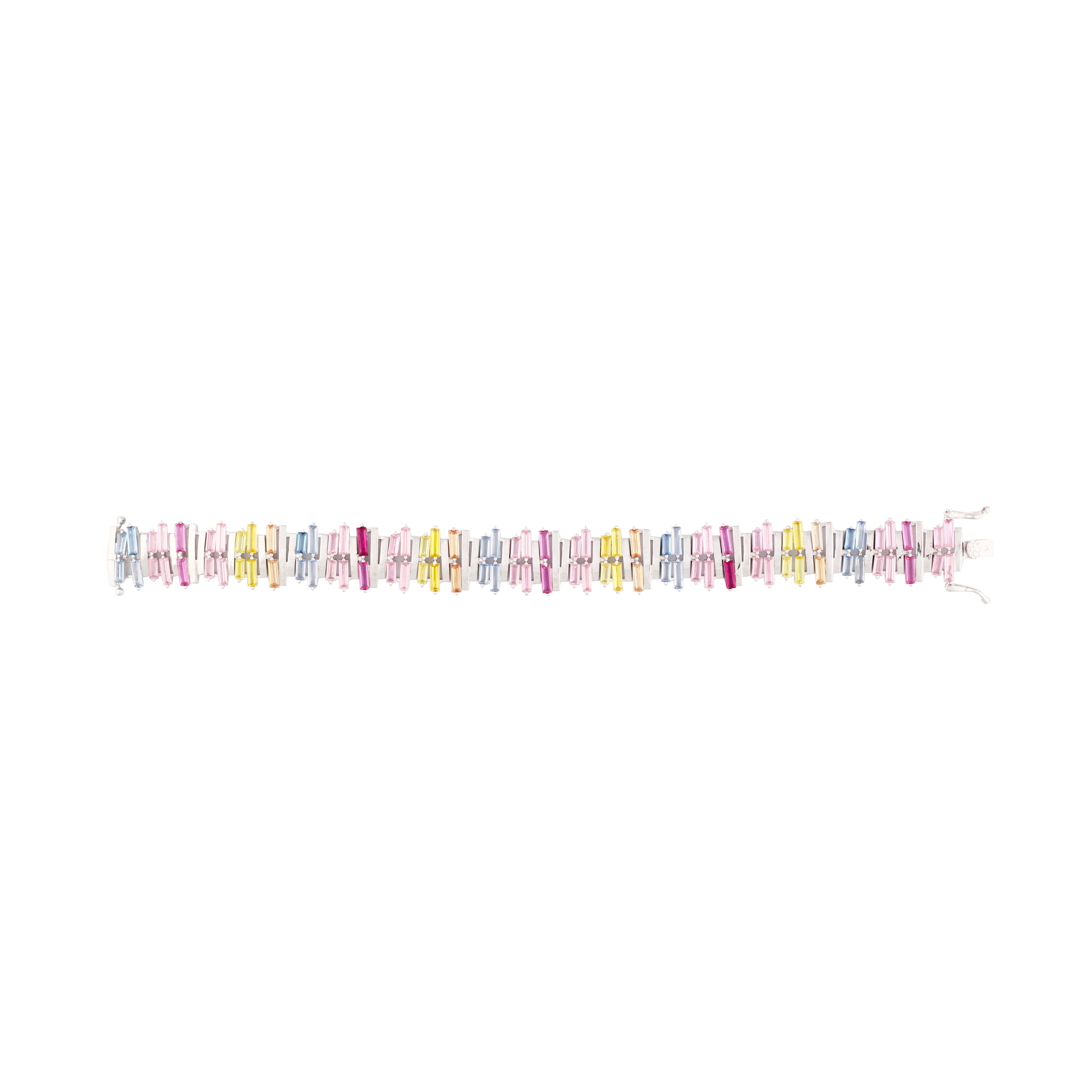 Asfour Tennis Bracelet In 925 Sterling Silver Stone Zircon Baguette