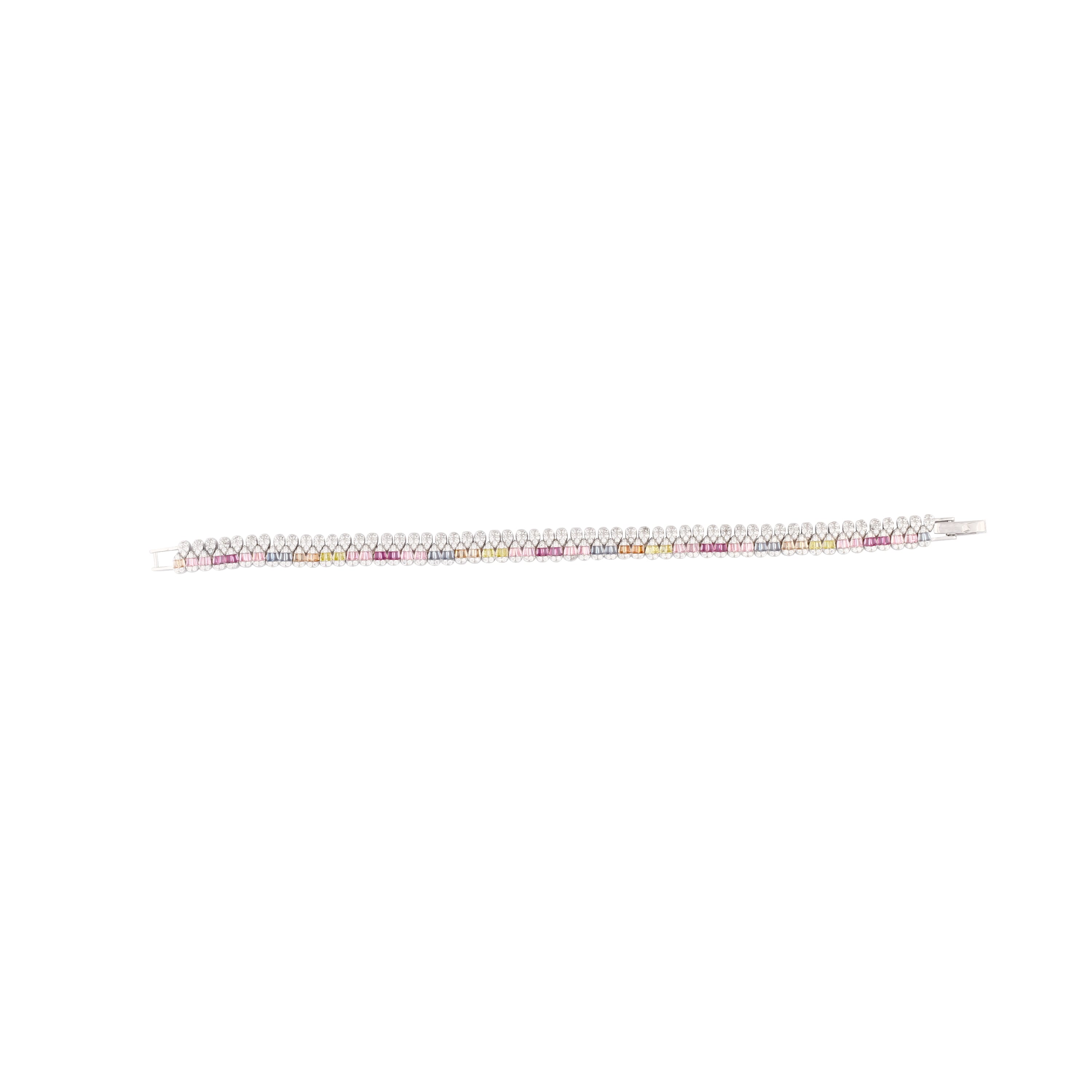 Asfour Tennis Bracelet In 925 Sterling Silver Stone Zircon Pear And Baguette