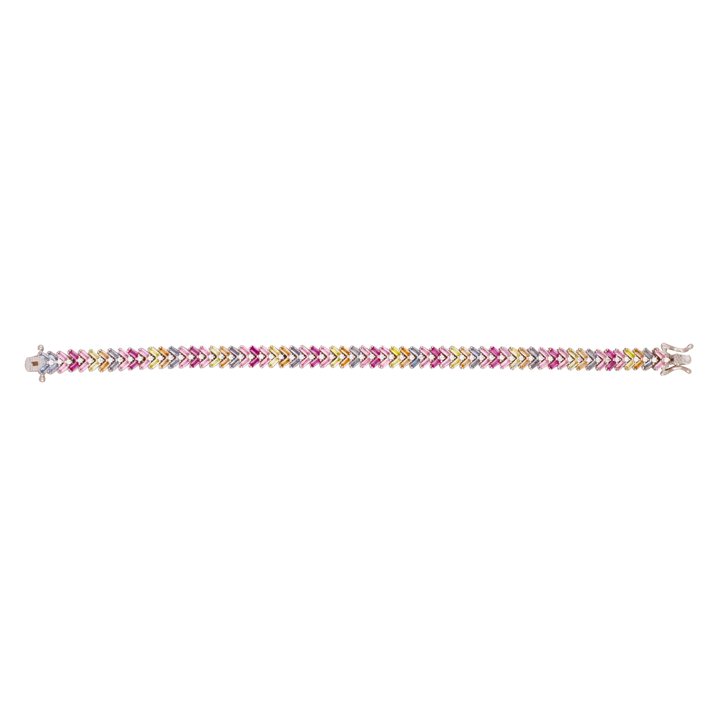 Asfour Tennis Bracelet In 925 Sterling Silver Stone Zircon Round And Baguette