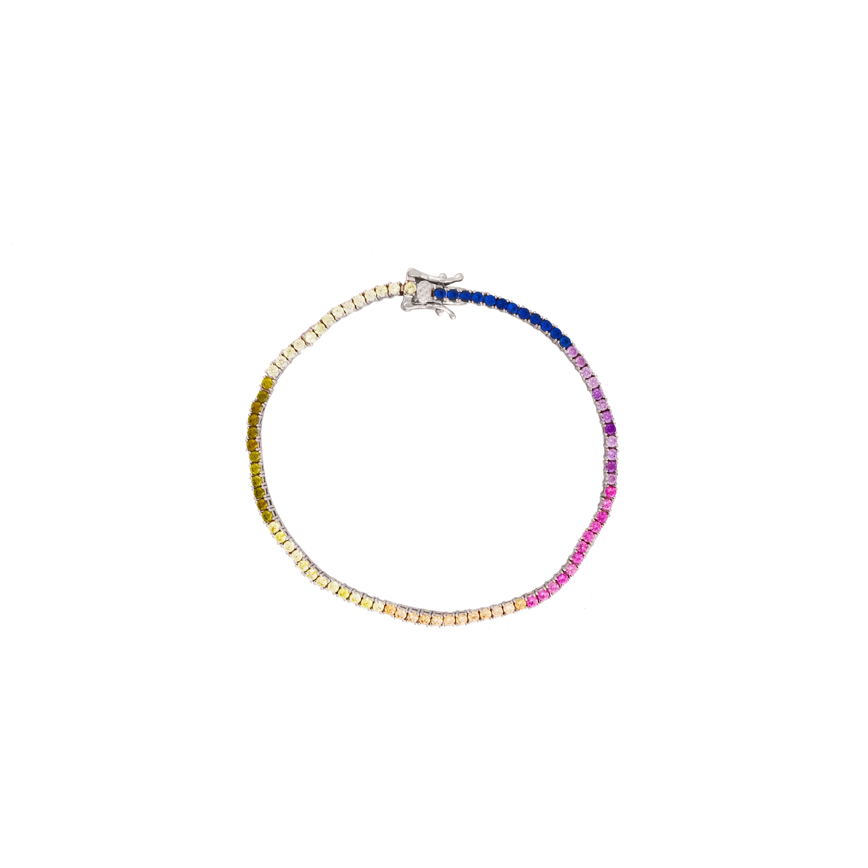 Asfour Tennis Bracelet In 925 Sterling Silver Stone Zircon Square
