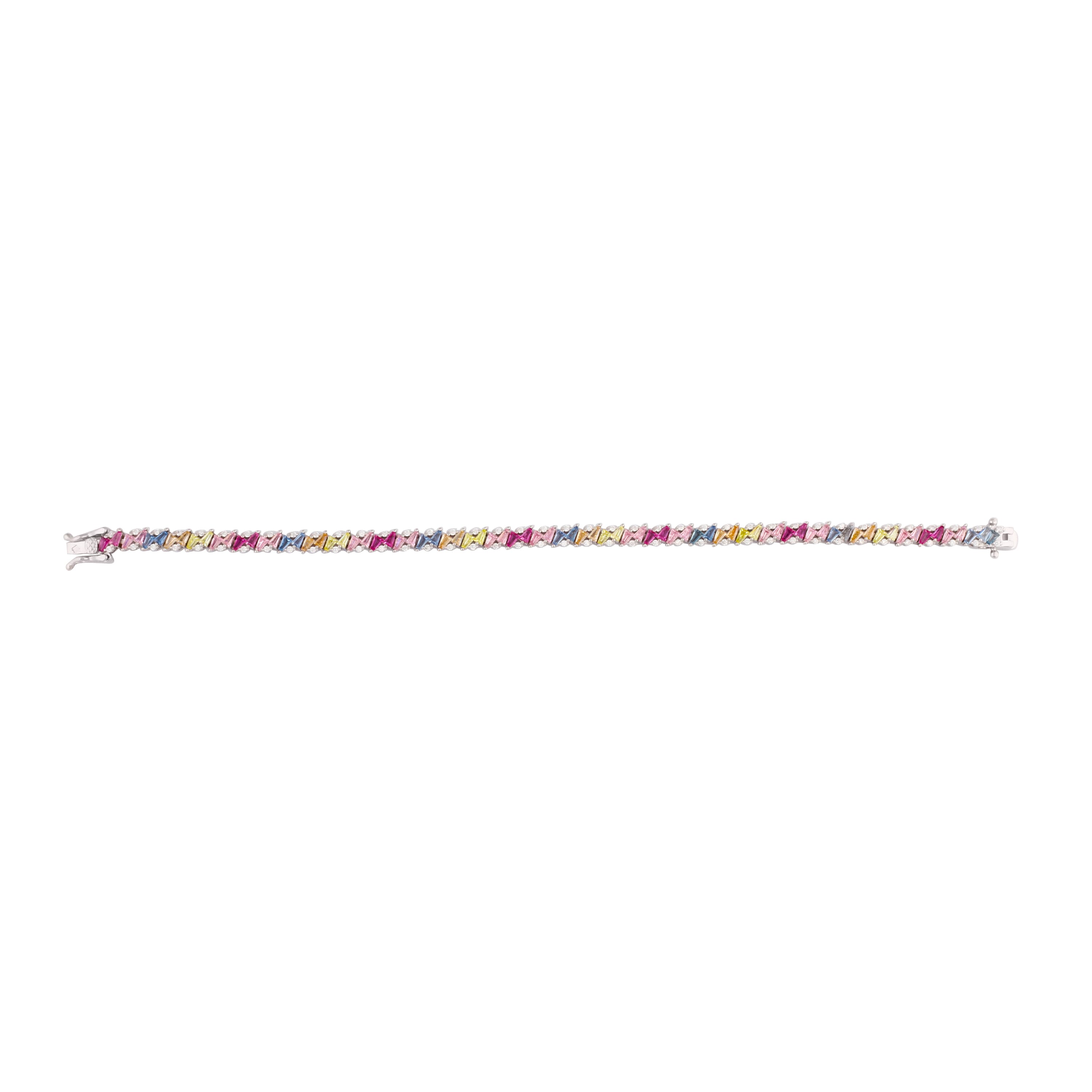 Asfour Tennis Bracelet In 925 Sterling Silver Stone Zircon Triangle