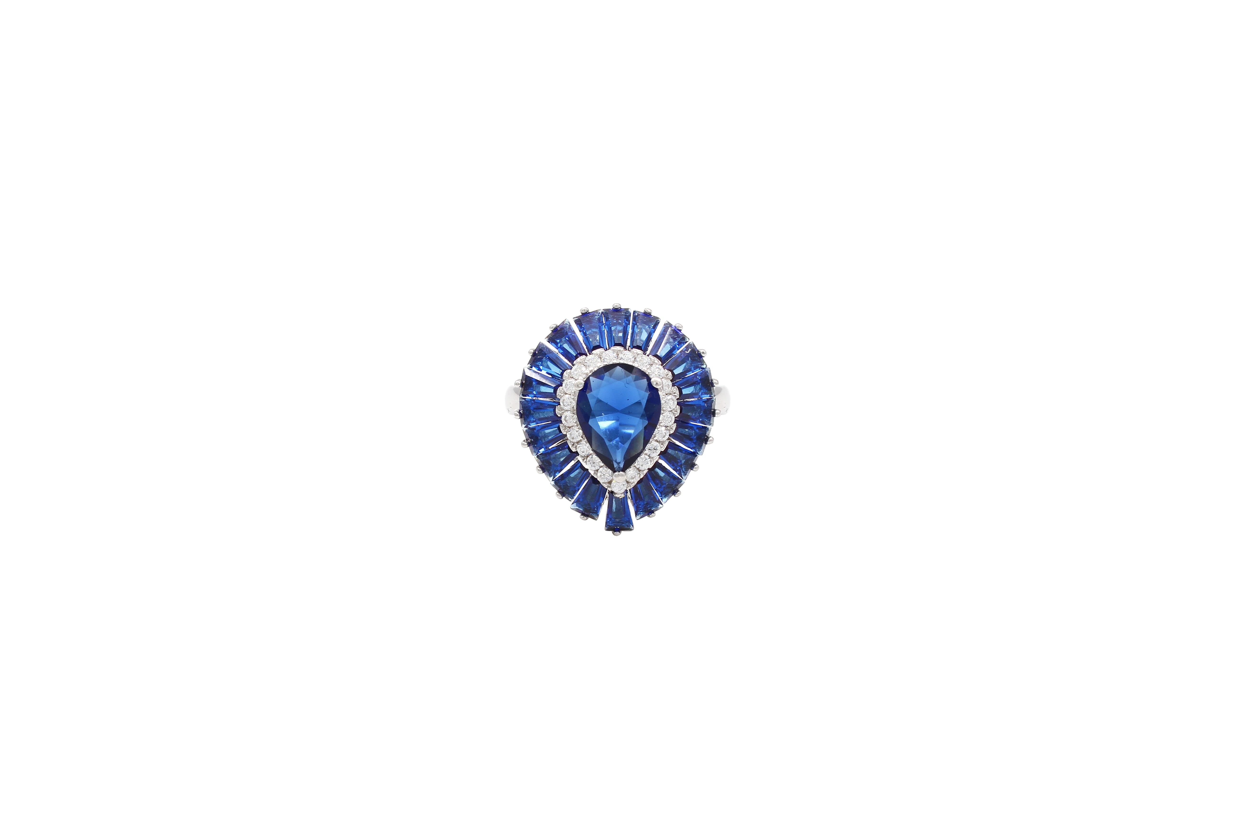 Asfour Vintage Ring With Blue Pear Design In 925 Sterling Silver RR0319-B-9
