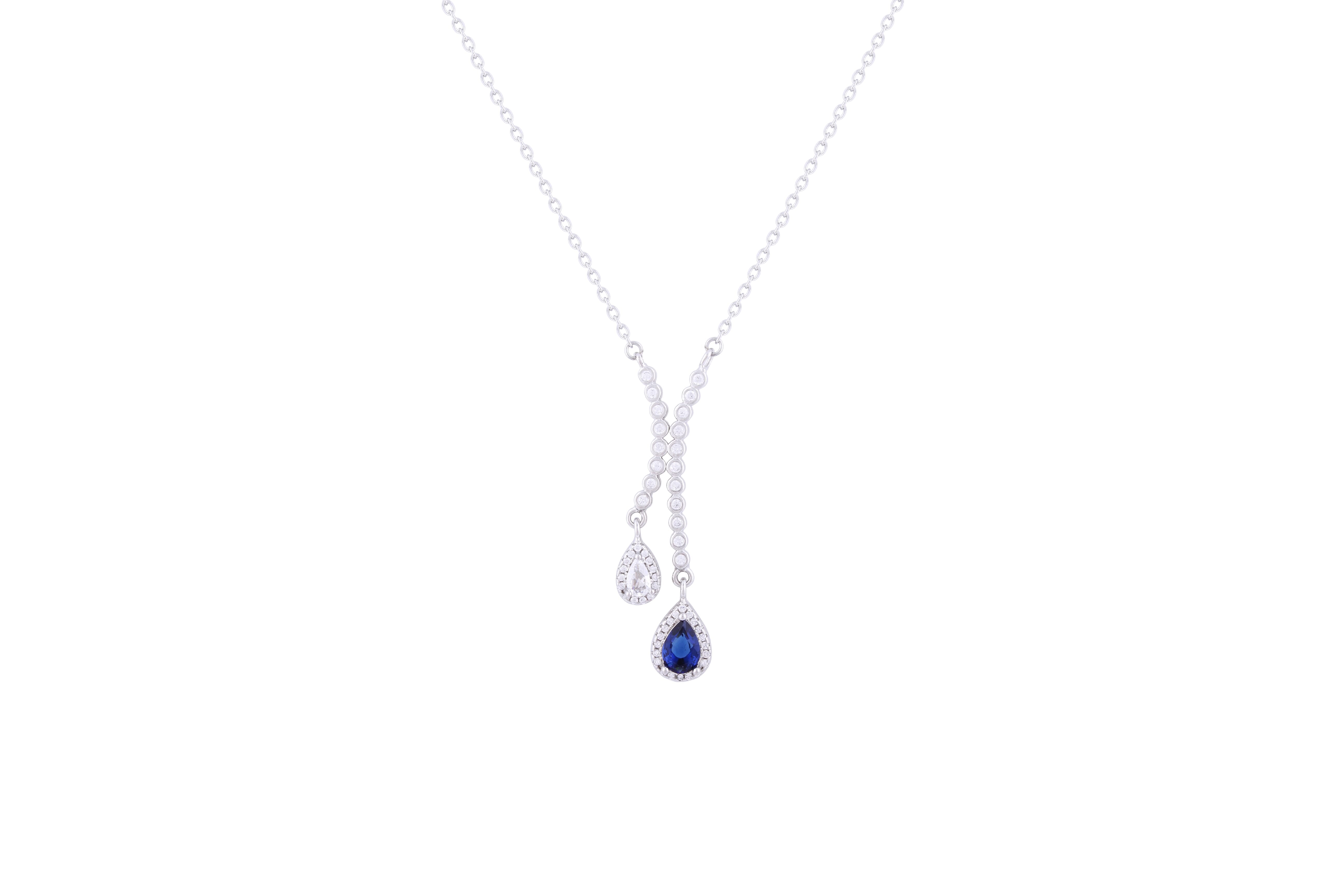 Asfour 925 Sterling Silver Necklace Inlaid With Blue Pear Stone NR0497-WB