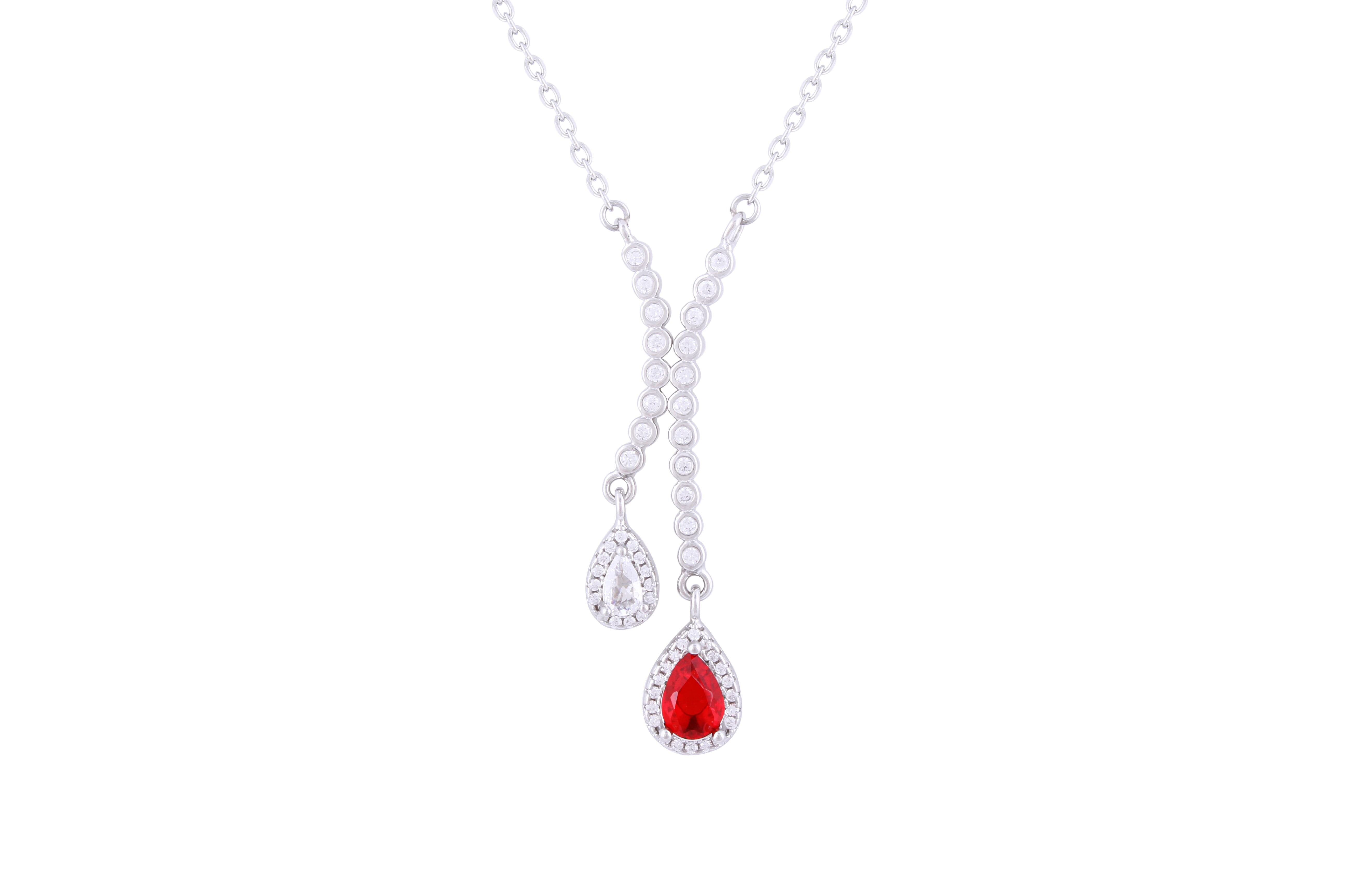 Asfour 925 Sterling Silver Necklace Inlaid With Red Pear Stone NR0497-WR