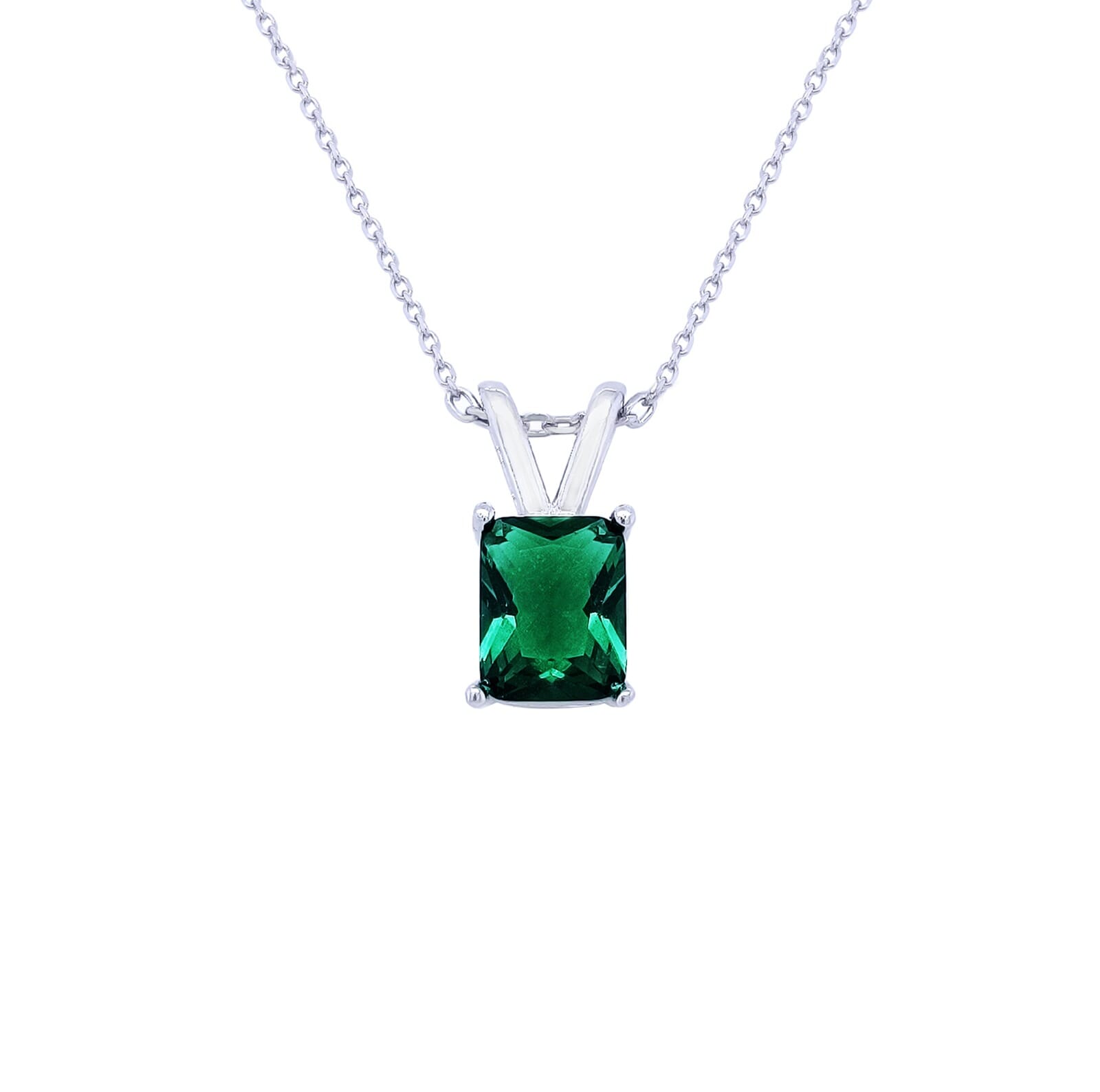 Asfour 925 Sterling Silver Necklace With Green Emerald Cut Pendant