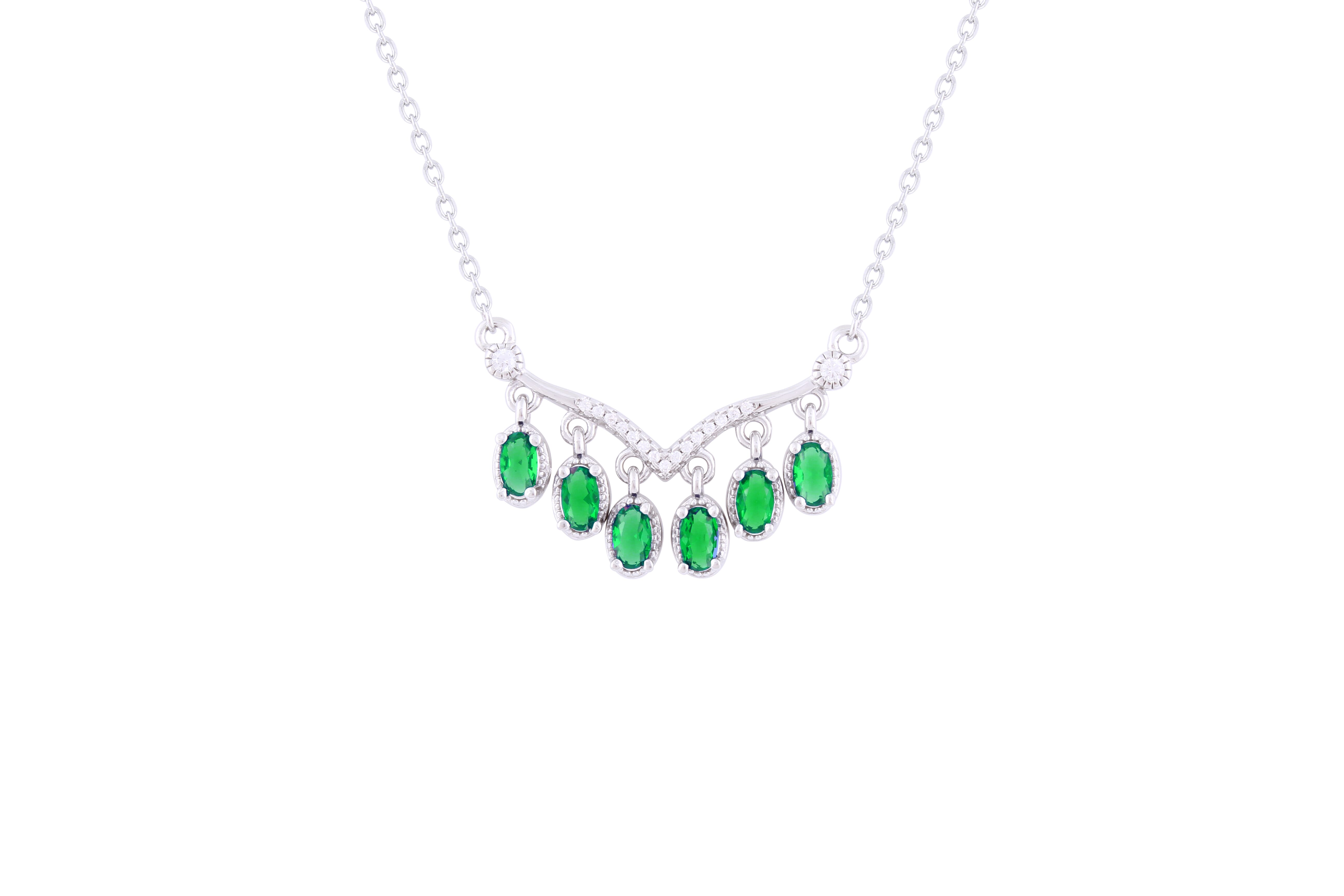 Asfour 925 Sterling Silver Necklace With Green Oval Cut Stones NR0495-G
