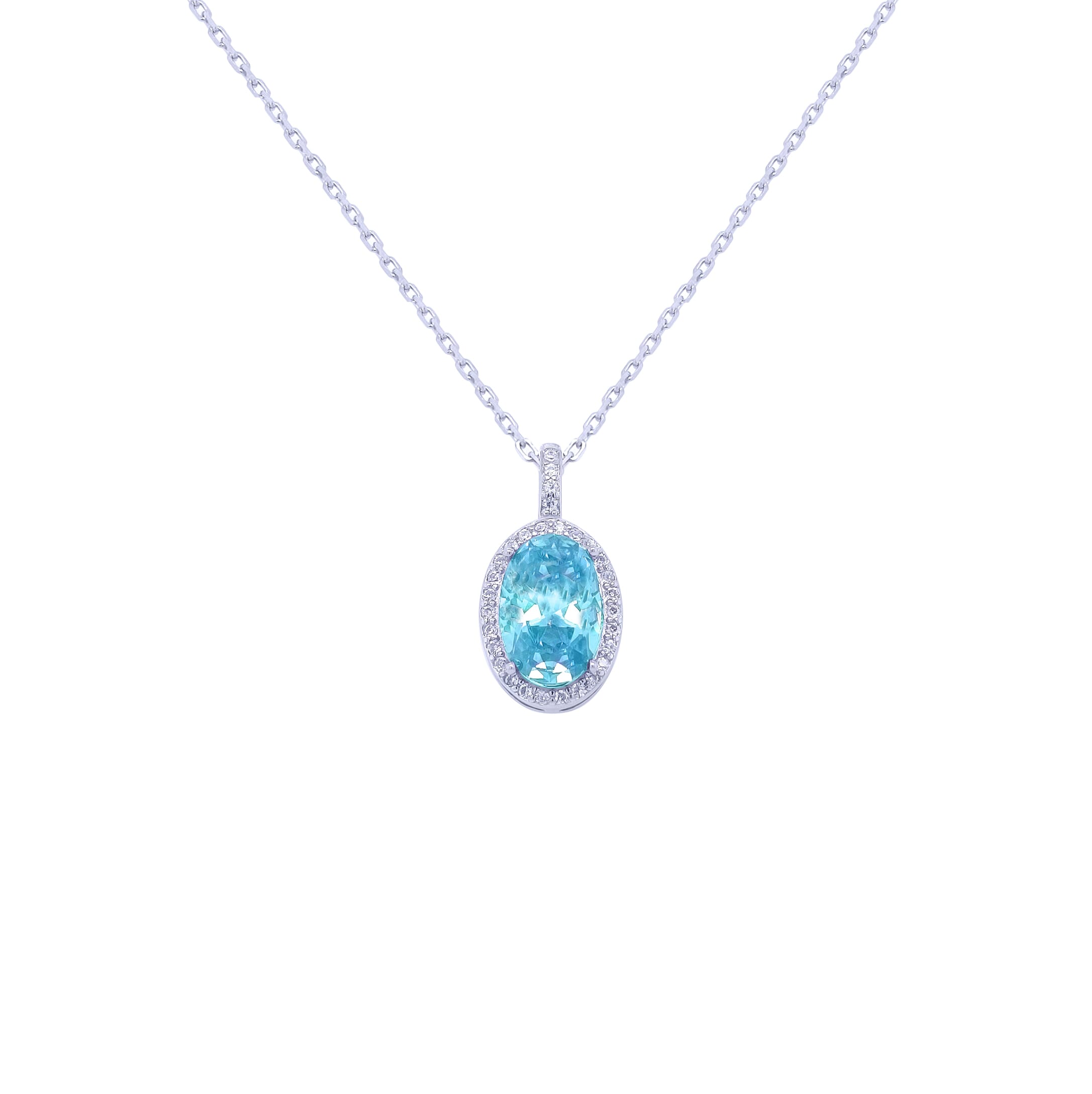 Asfour 925 Sterling Silver Necklace With Oval Blue Topaze Pendant
