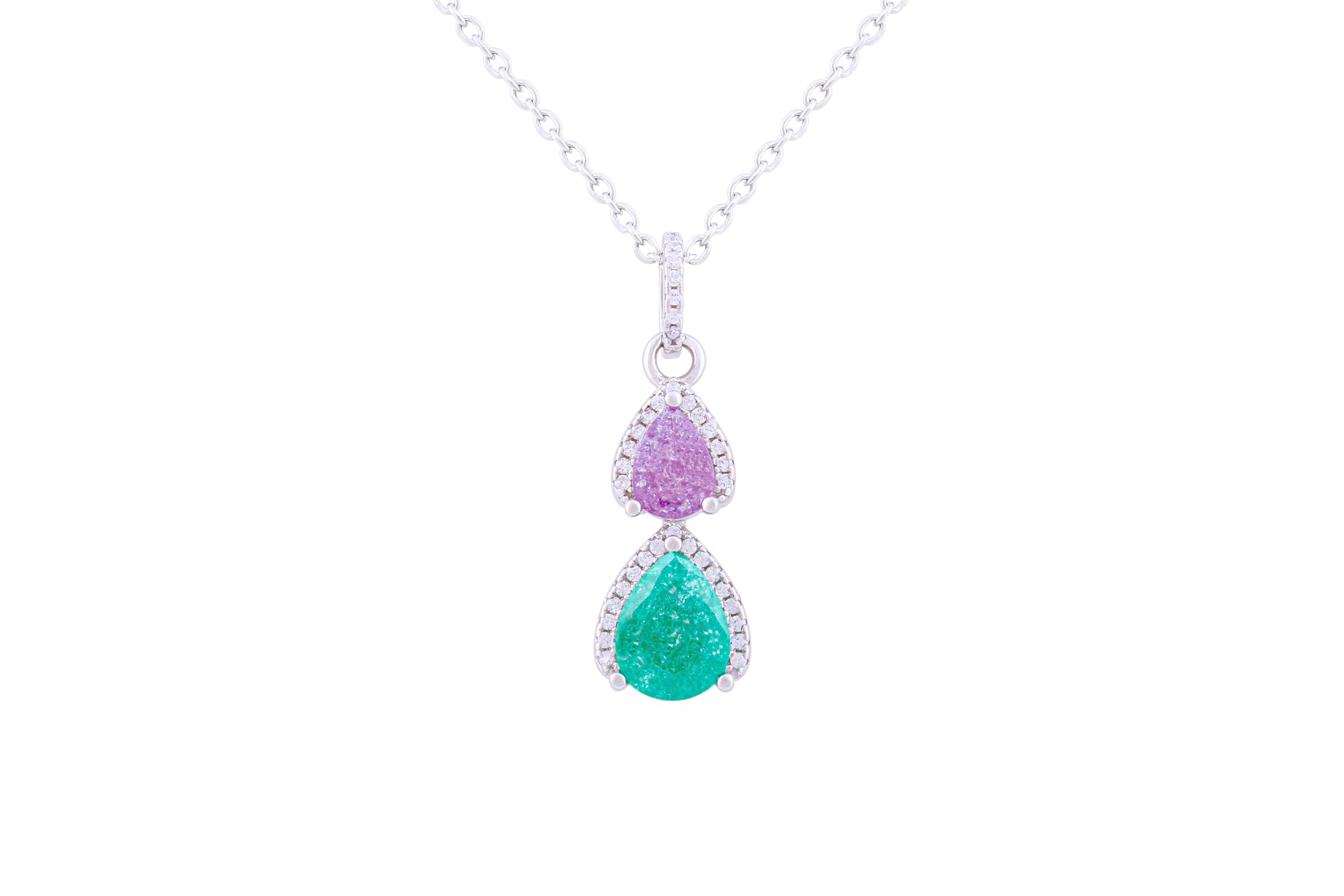 Asfour 925 Sterling Silver Necklace With Tenzanite & Green Pear Pendant NR0499-GN-A