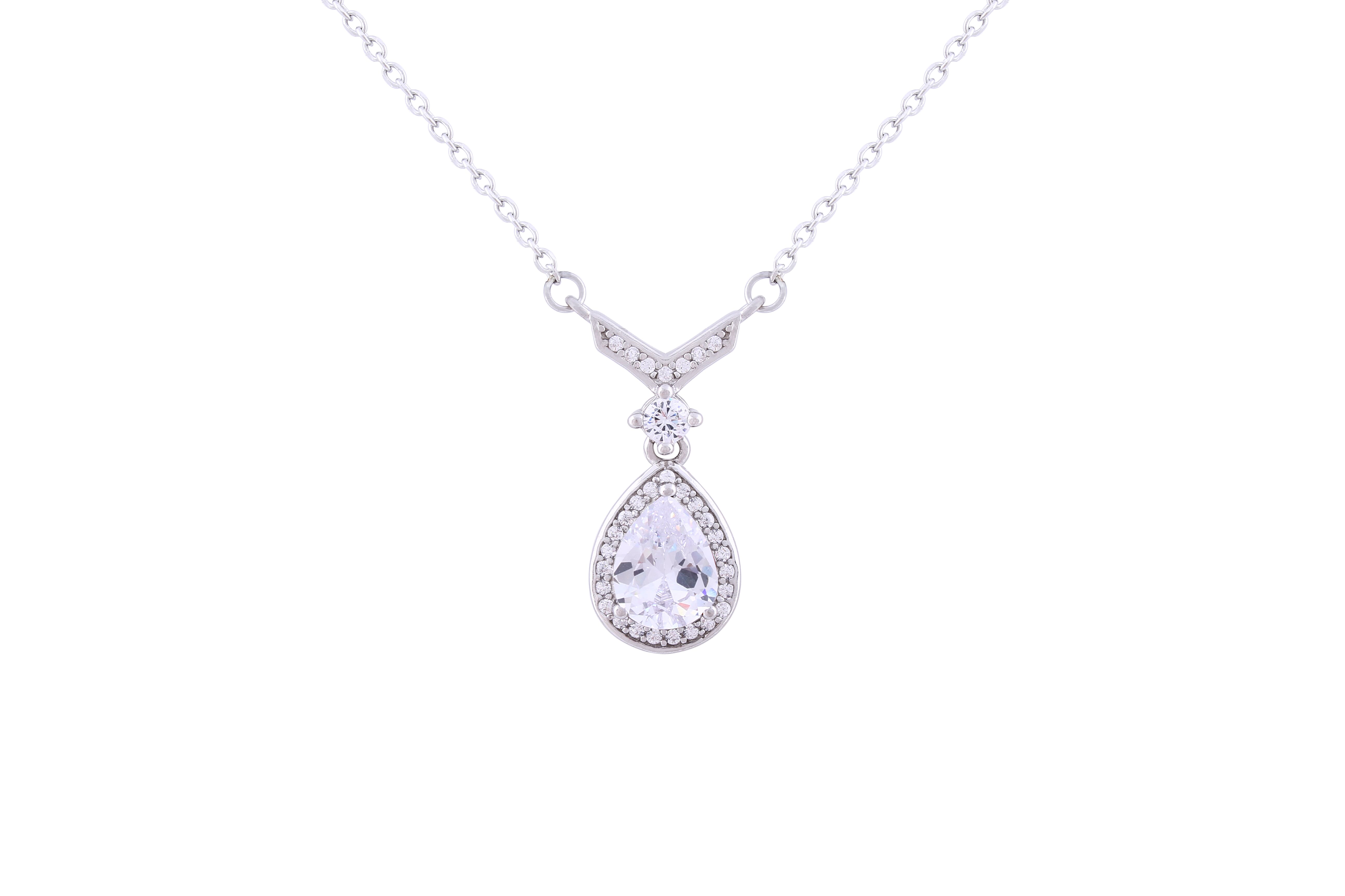 Asfour 925 Sterling Silver Necklace With Zircon Pear Pendant NR0498-W