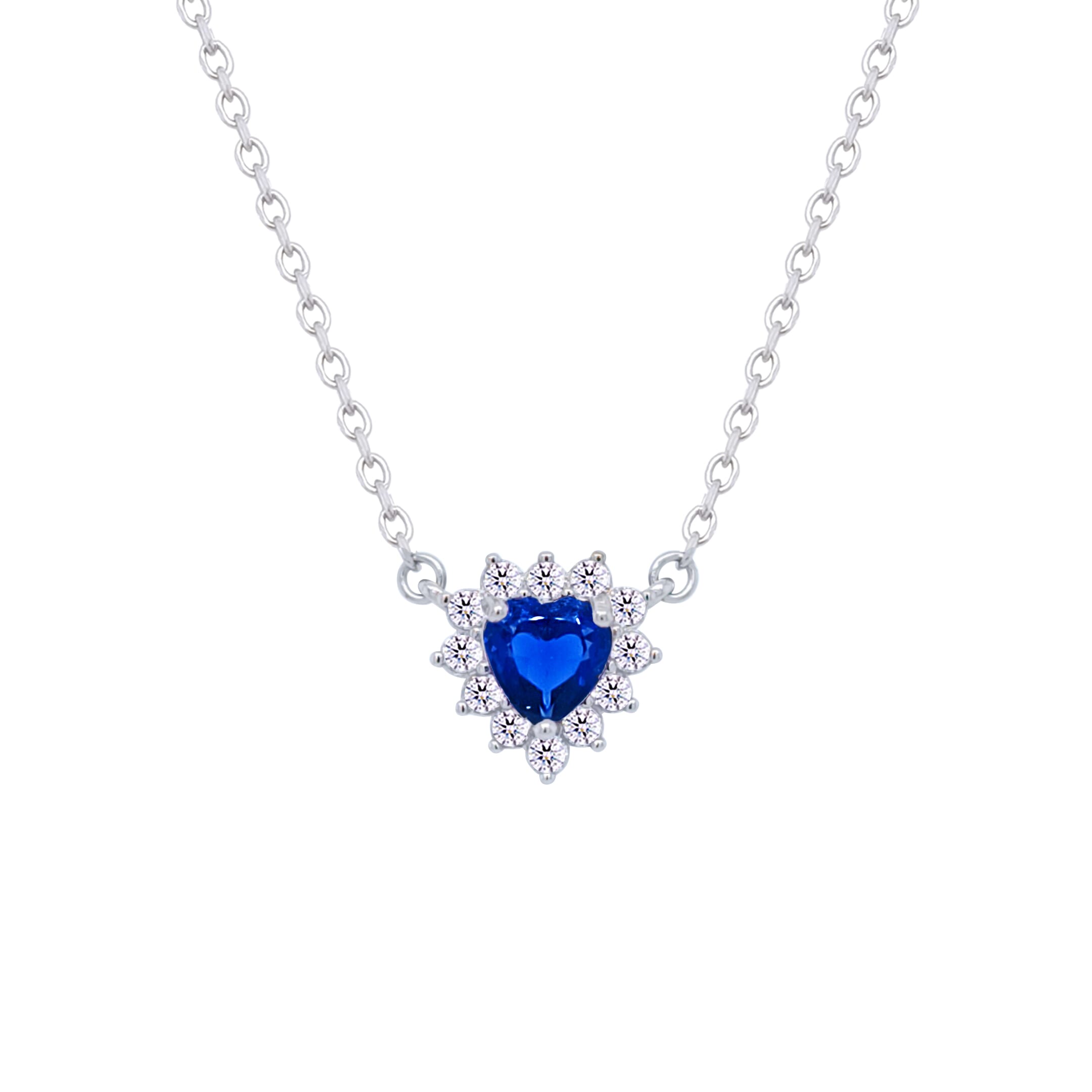 Asfour Crystal Chain Necklace With Blue Heart Design In 925 Sterling Silver-ND0394-B