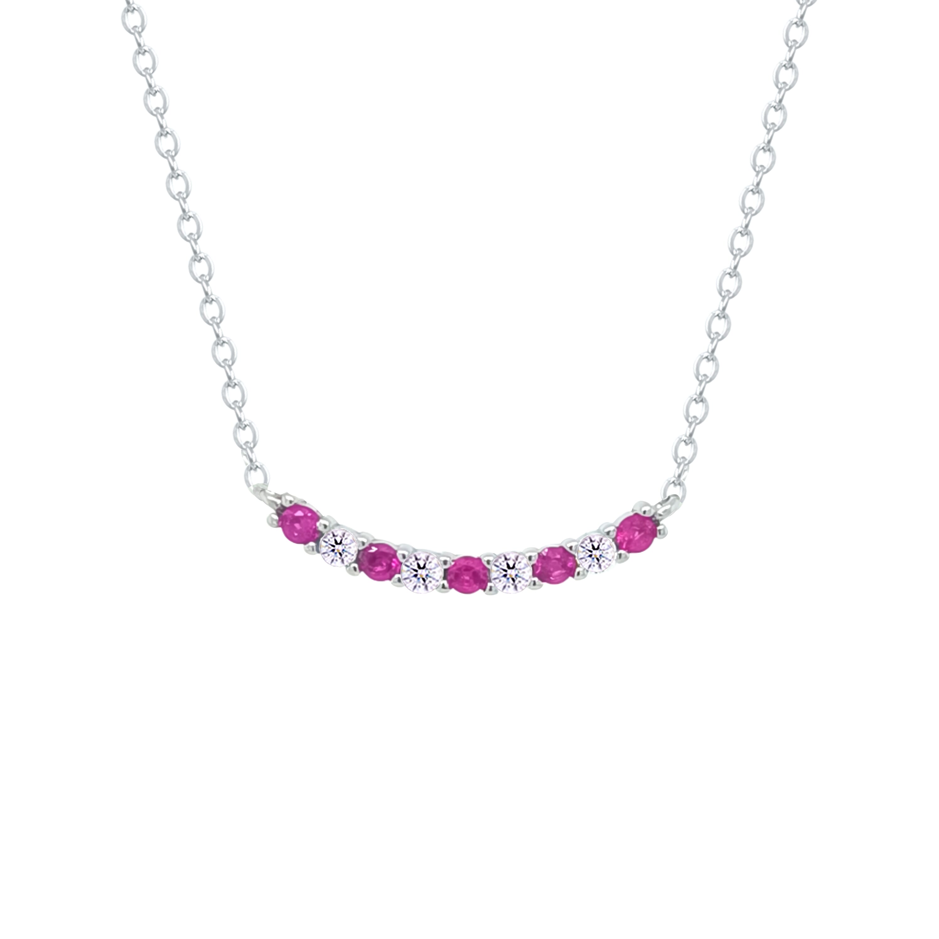 Asfour Crystal Chain Necklace With Clear & Fuchsia Zircon Stones In 925 Sterling Silver-NM0106-WF