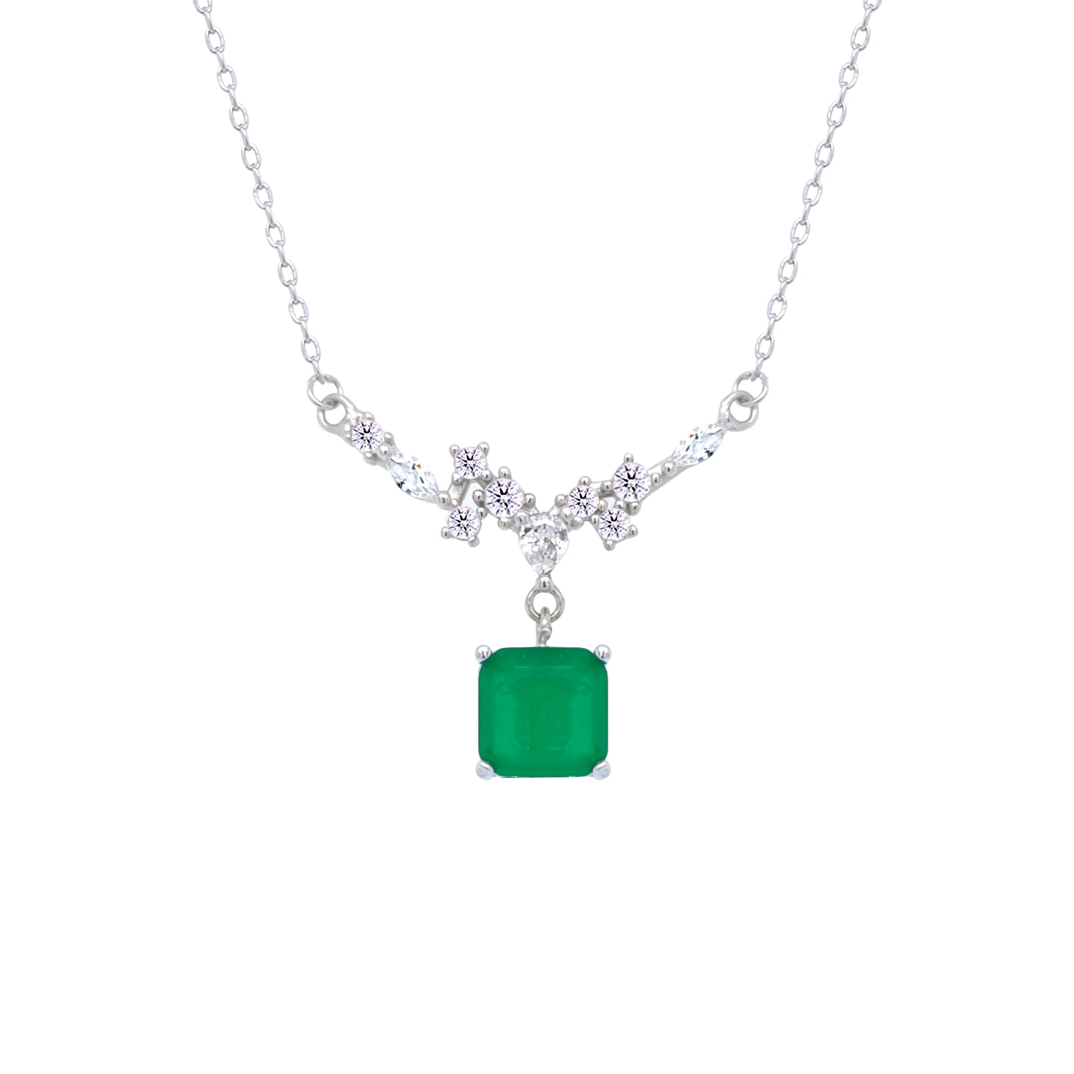 Asfour Crystal Chain Necklace With Decorative Emerald Square Pendant In 925 Sterling Silver-ND0446-G