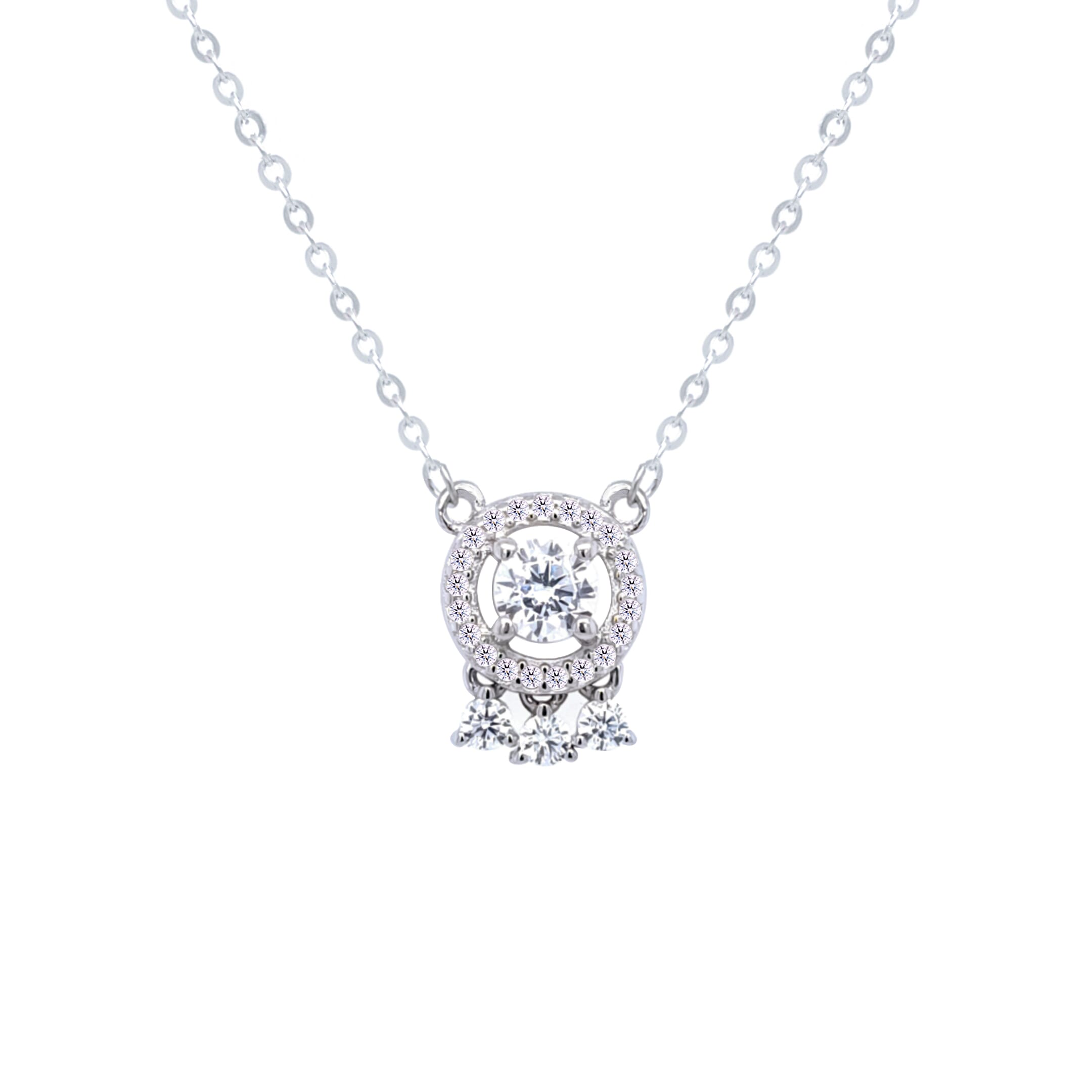 Asfour Crystal Chain Necklace With Decorative Round Pendant In 925 Sterling Silver-ND0410