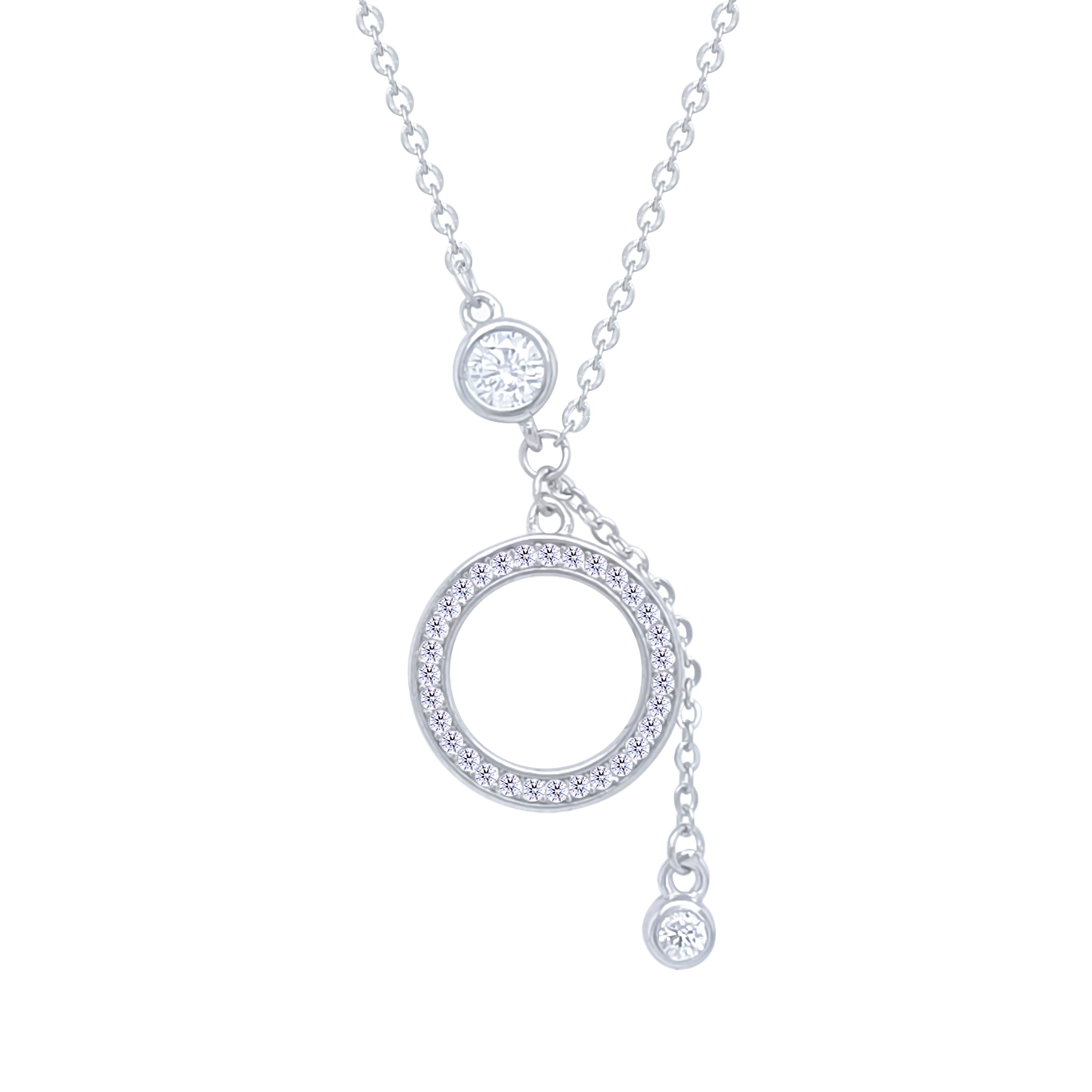 Asfour Crystal Chain Necklace With Decorative Round Pendant In 925 Sterling Silver-ND0543