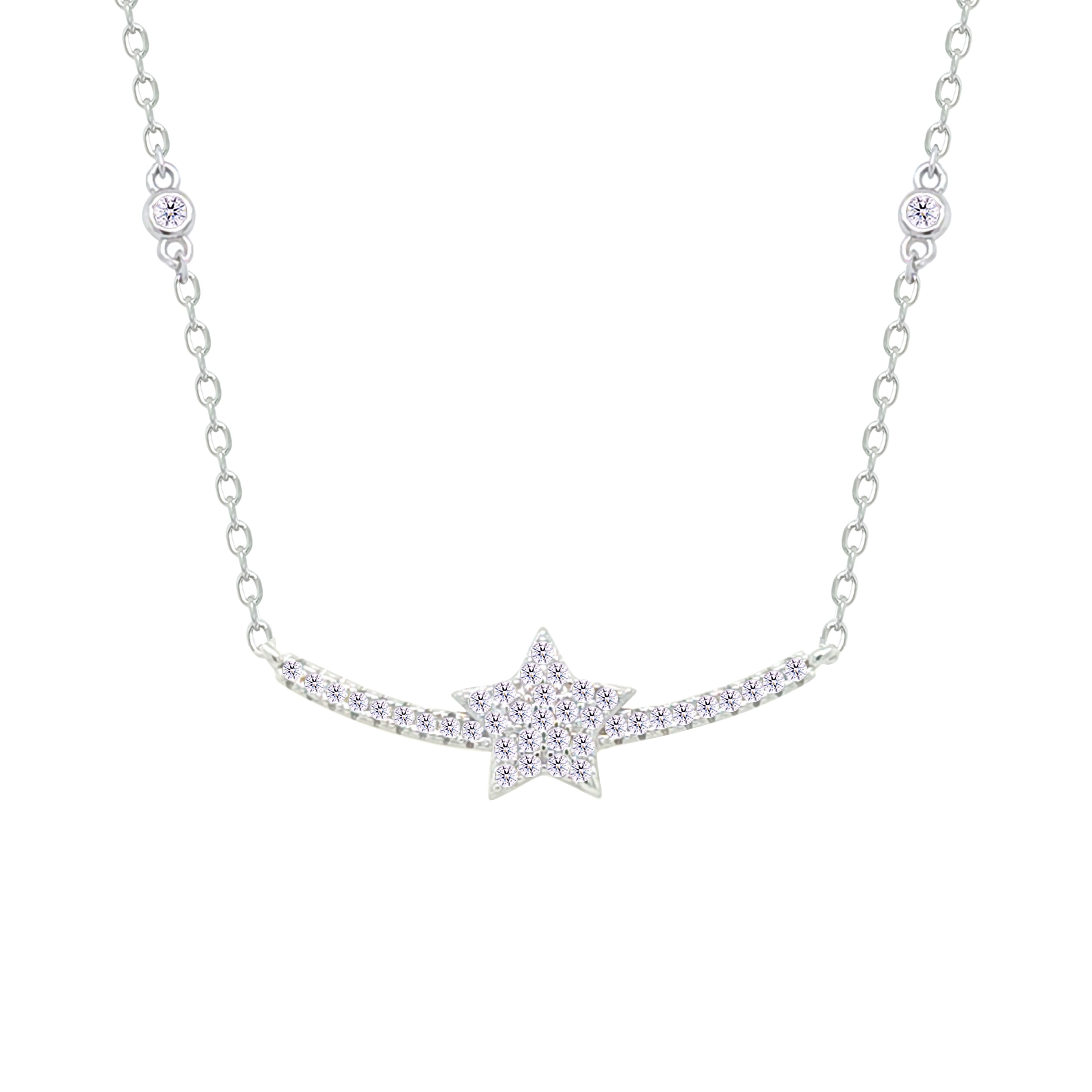 Asfour Crystal Chain Necklace With Decorative Star Design In 925 Sterling Silver-NM0108