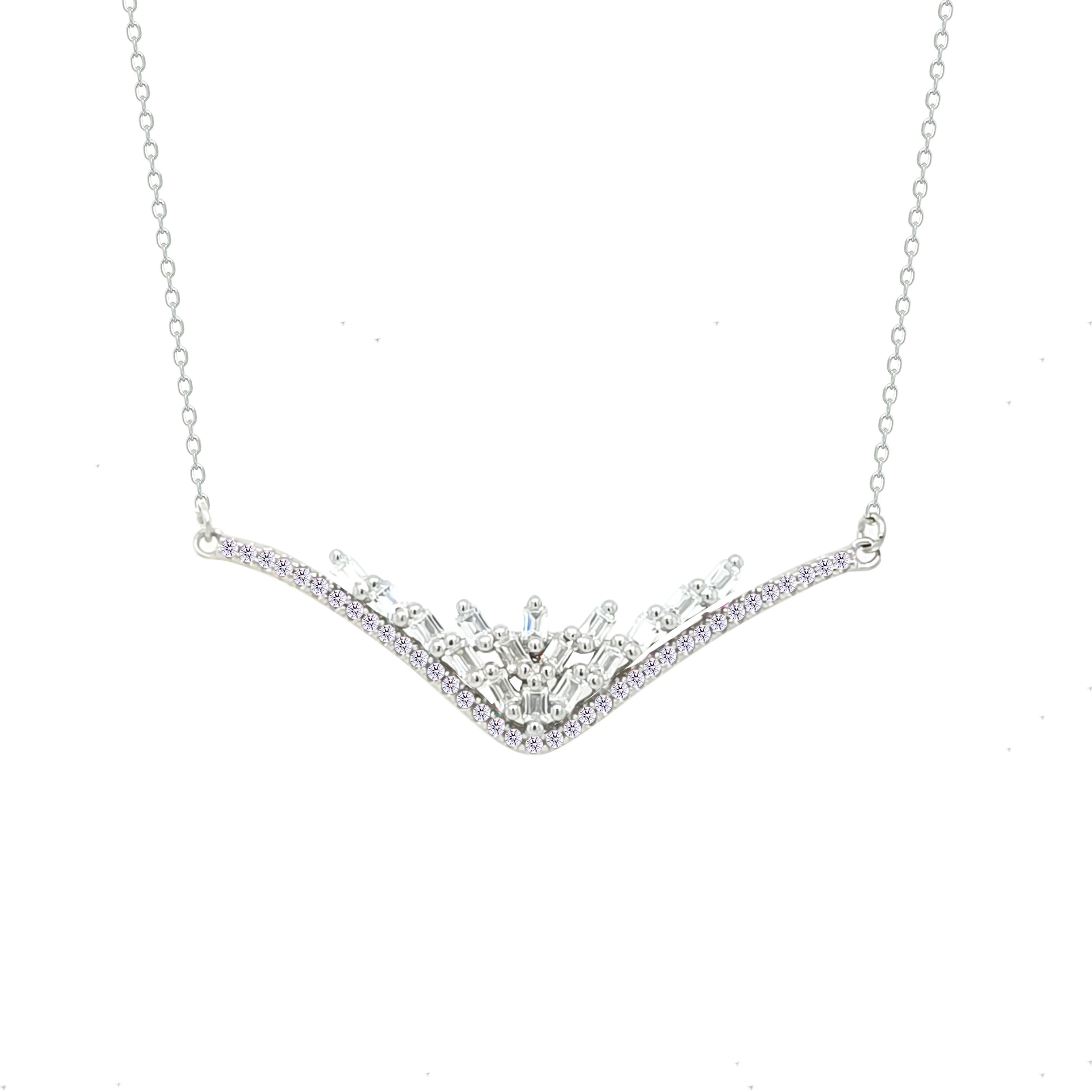 Asfour Crystal Chain Necklace With Deer Antlers Design In 925 Sterling Silver-NM0101