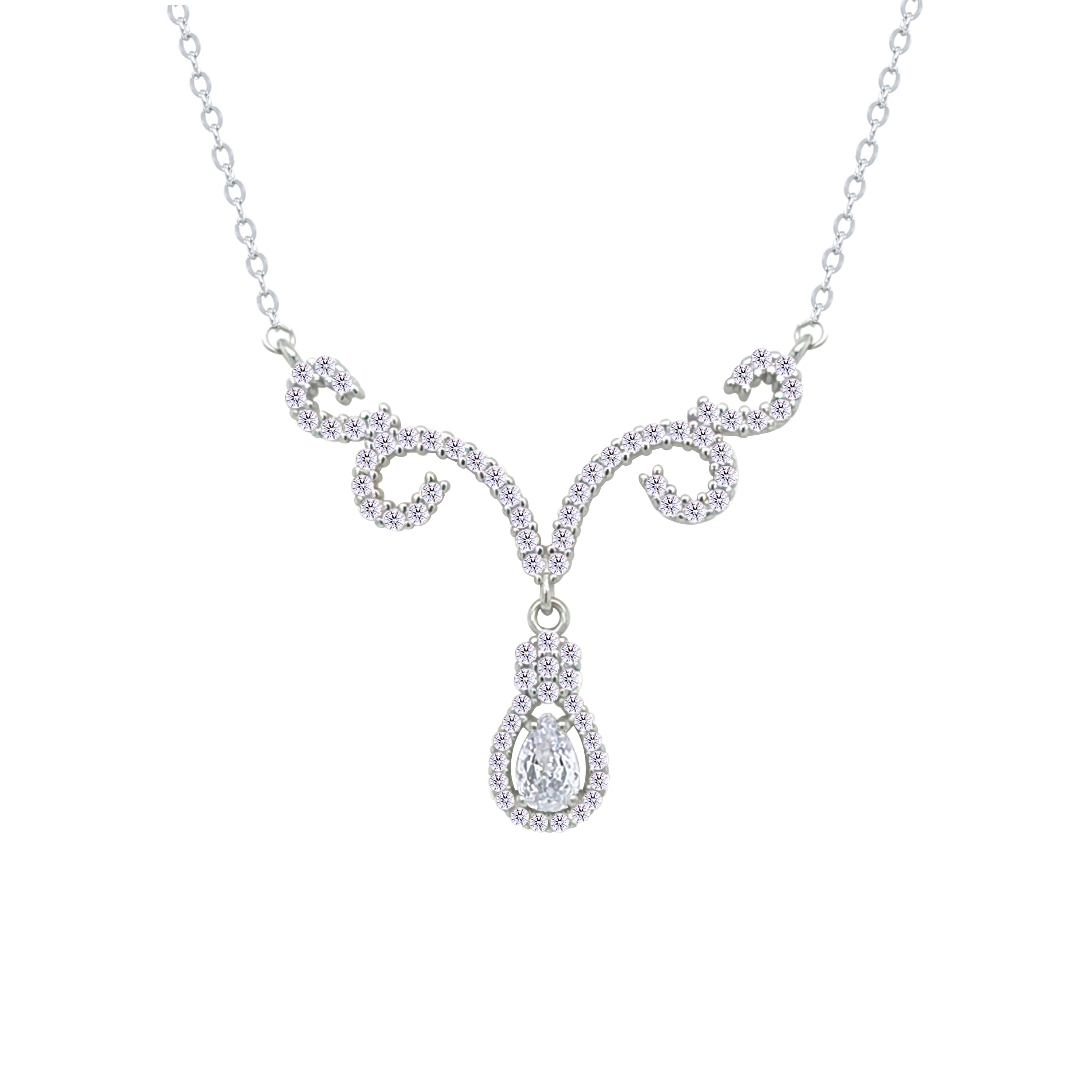 Asfour Crystal Chain Necklace With Deer Antlers Design In 925 Sterling Silver-NM0112
