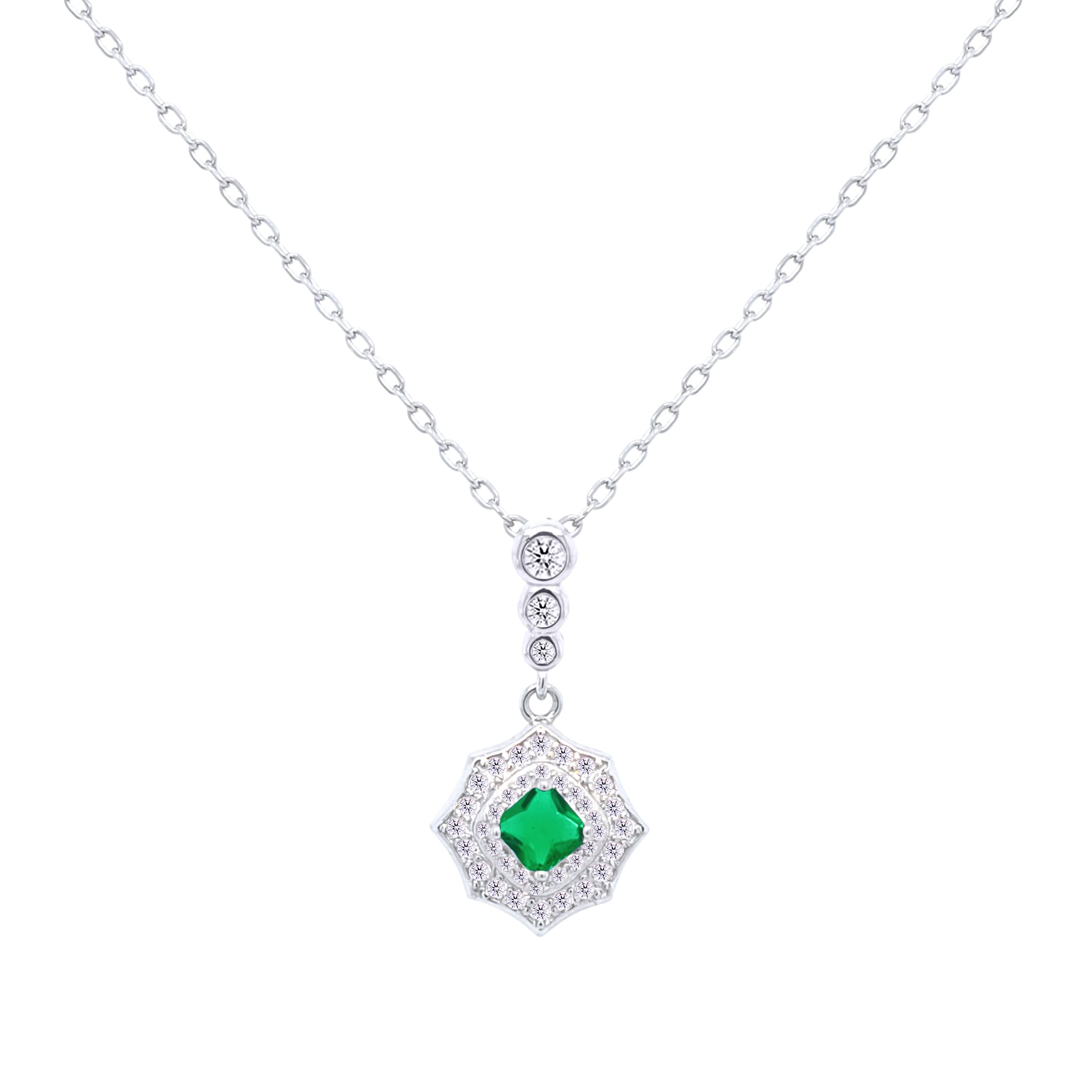 Asfour Crystal Chain Necklace With Emerald Decorative Pendant In 925 Sterling-ND0434-WG