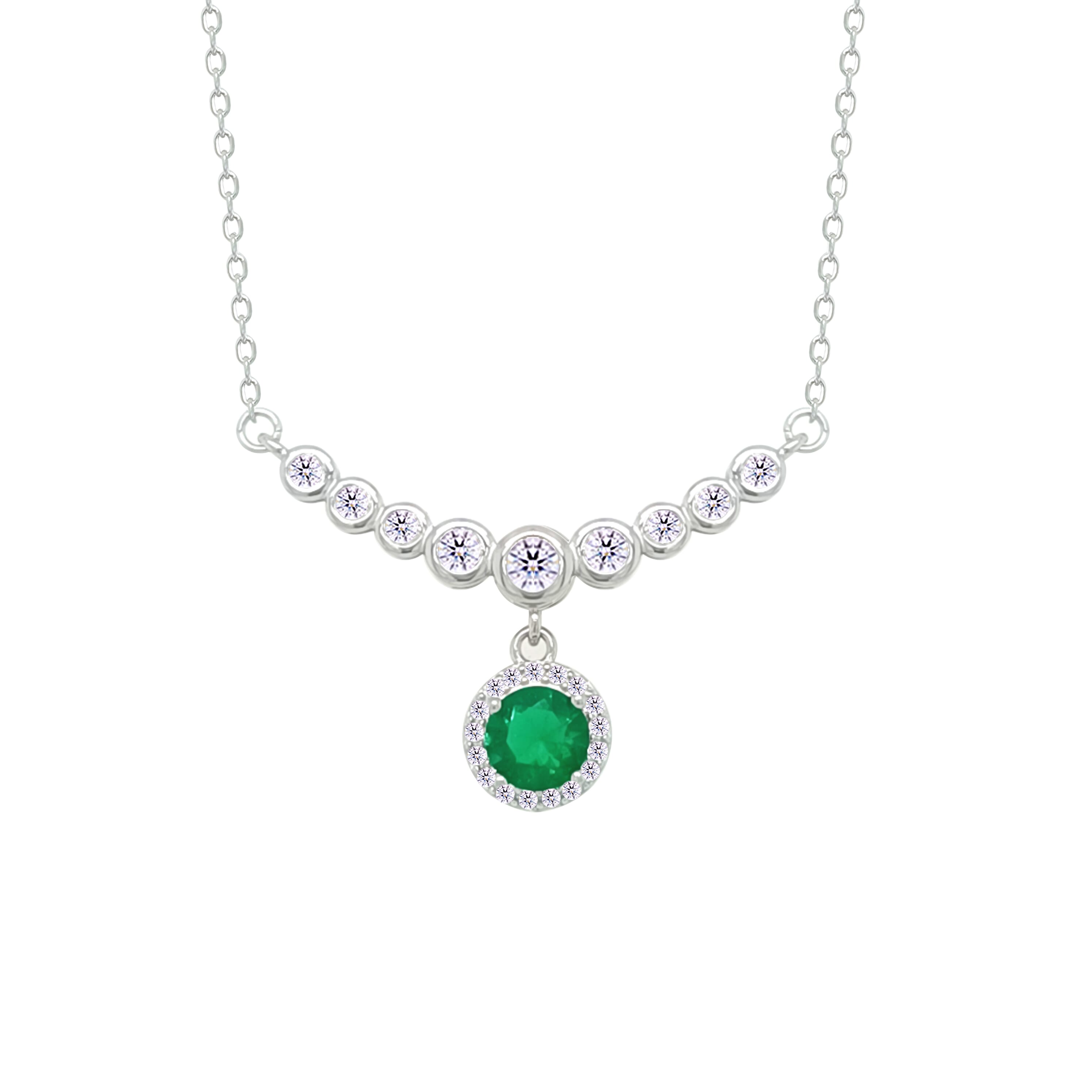 Asfour Crystal Chain Necklace With Emerald Round Design In 925 Sterling Silver-NM0097-WG