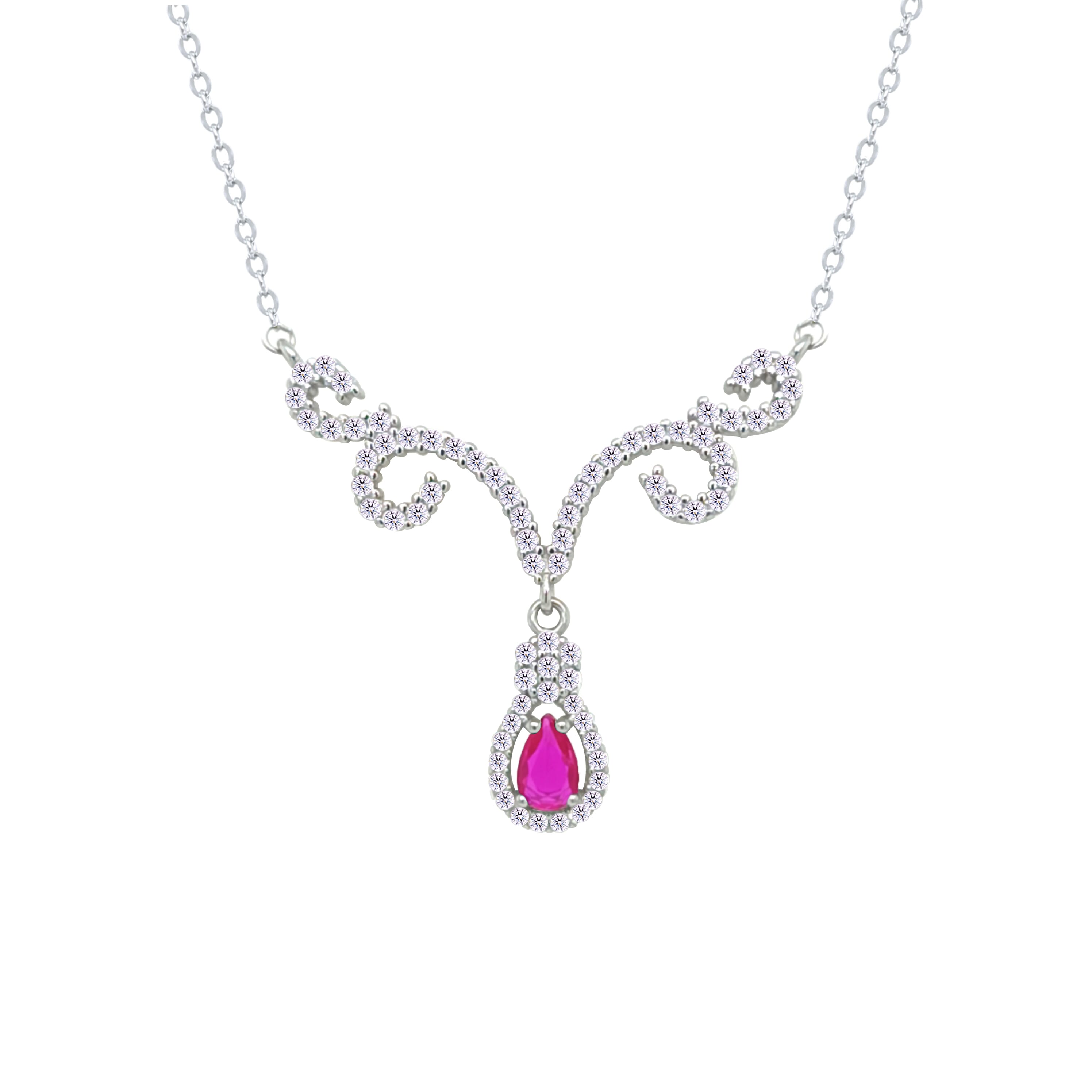 Asfour Crystal Chain Necklace With Fuchsia Deer Antlers Design In 925 Sterling Silver-NM0112-WF