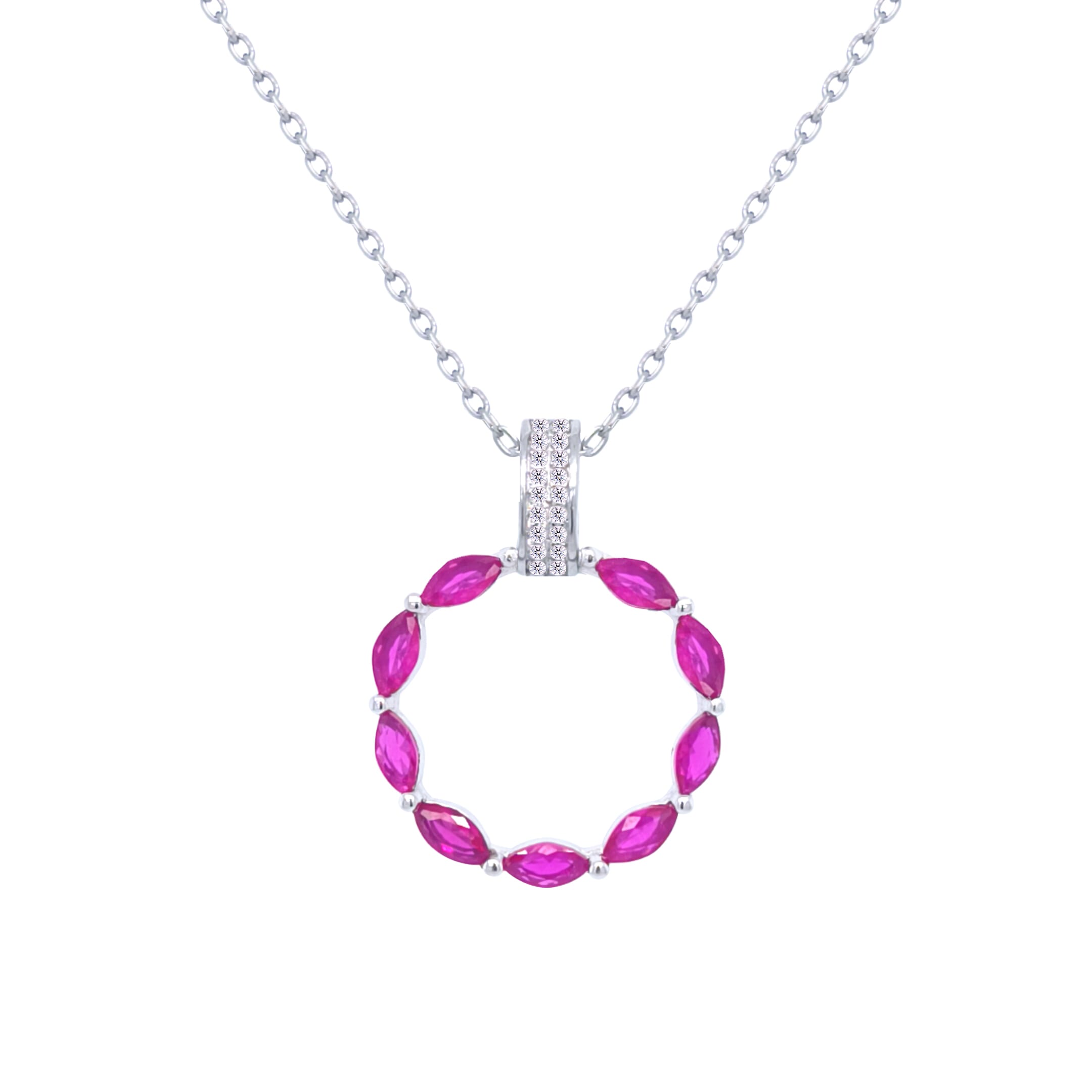 Asfour Crystal Chain Necklace With Fuchsia Hollow Circle Pendant In 925 Sterling-ND0433-F