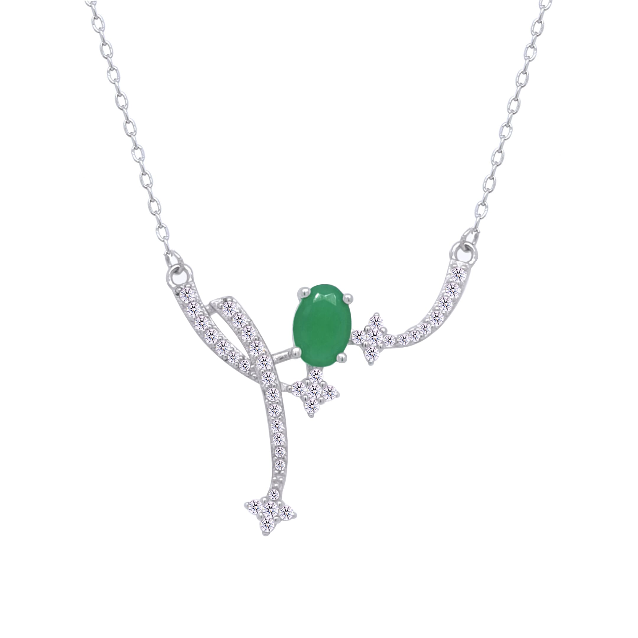 Asfour Crystal Chain Necklace With Green Art deco Desing In 925 Sterling Silver-ND0455-WGM