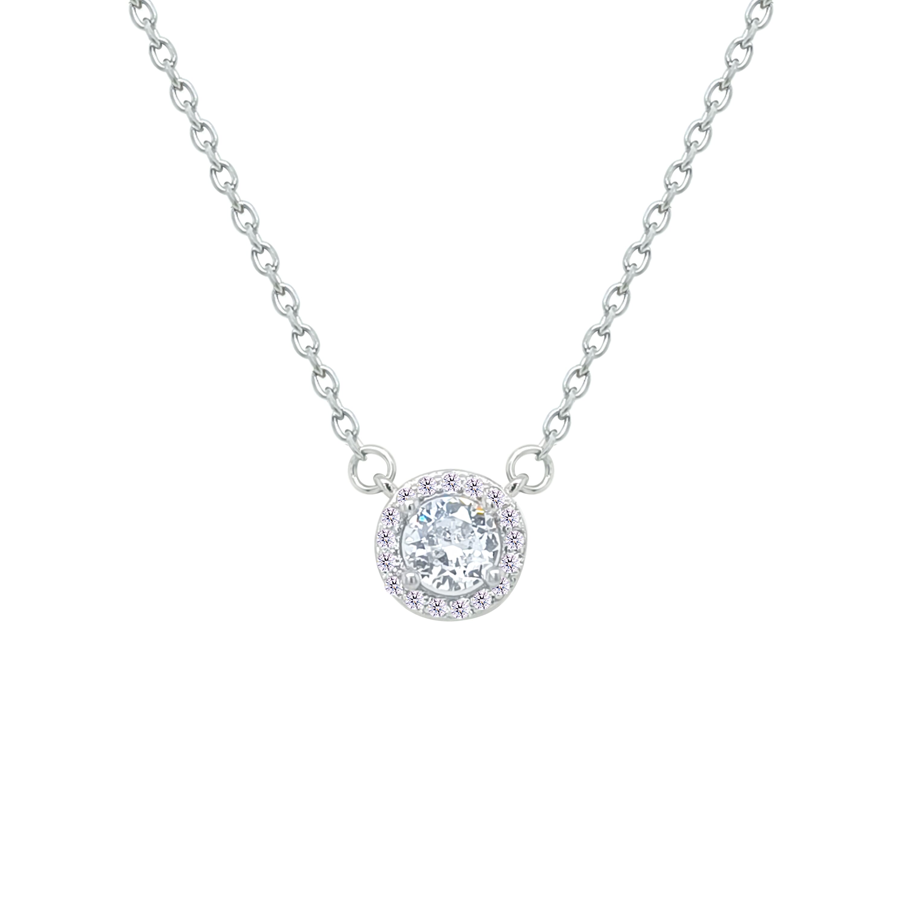 Asfour Crystal Chain Necklace With Halo Round Zircon Pendant In 925 Sterling Silver-NM0104