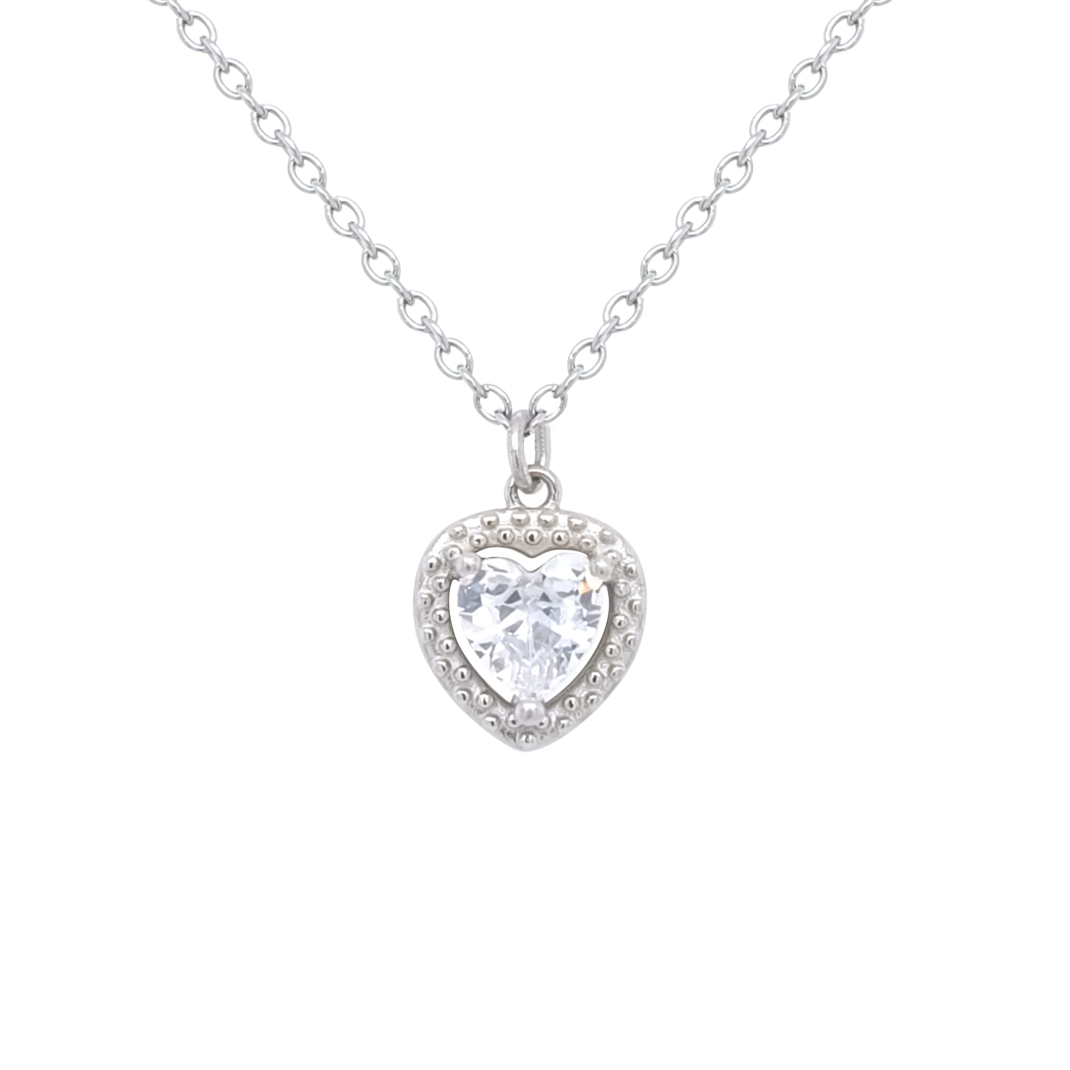 Asfour Crystal Chain Necklace With Heart Pendant In 925 Sterling Silver-ND0461