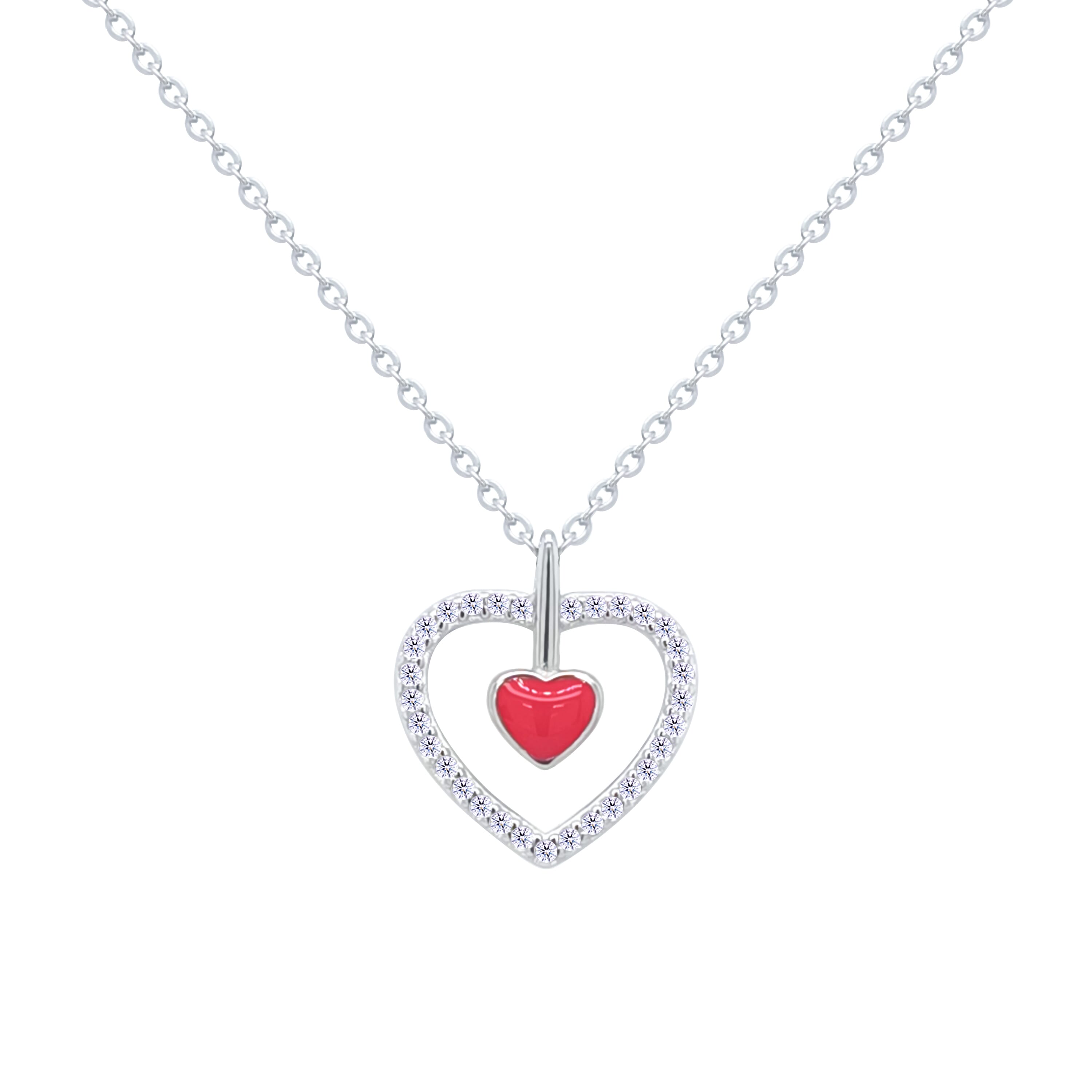 Asfour Crystal Chain Necklace With Heart Pendant In 925 Sterling Silver-ND0526-R