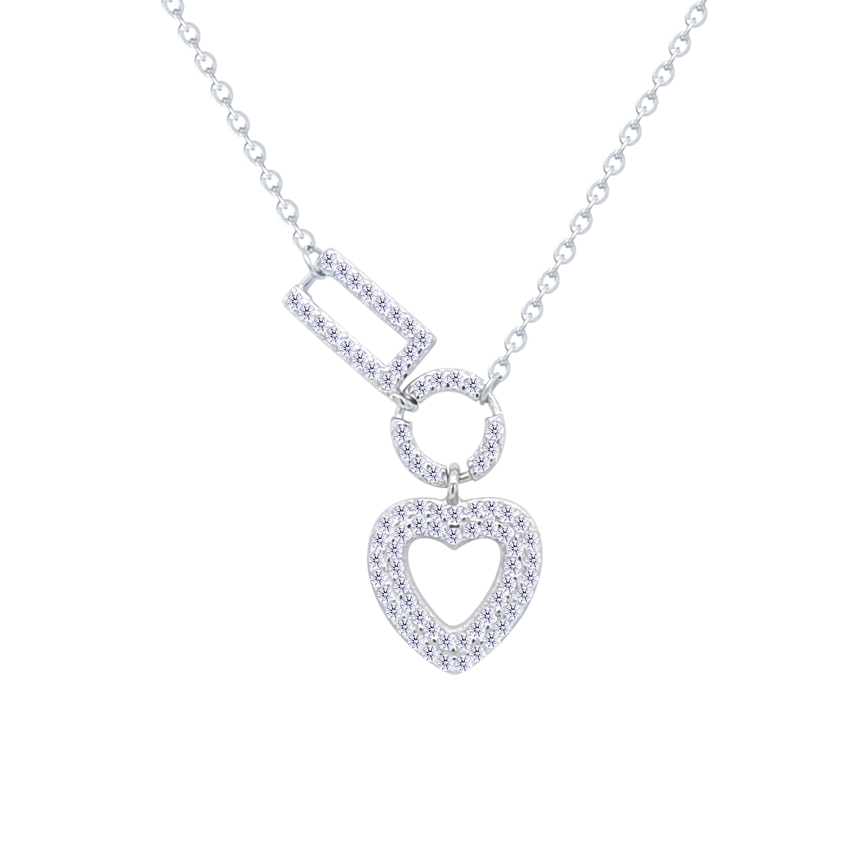 Asfour Crystal Chain Necklace With Heart Pendant In 925 Sterling Silver-ND0530