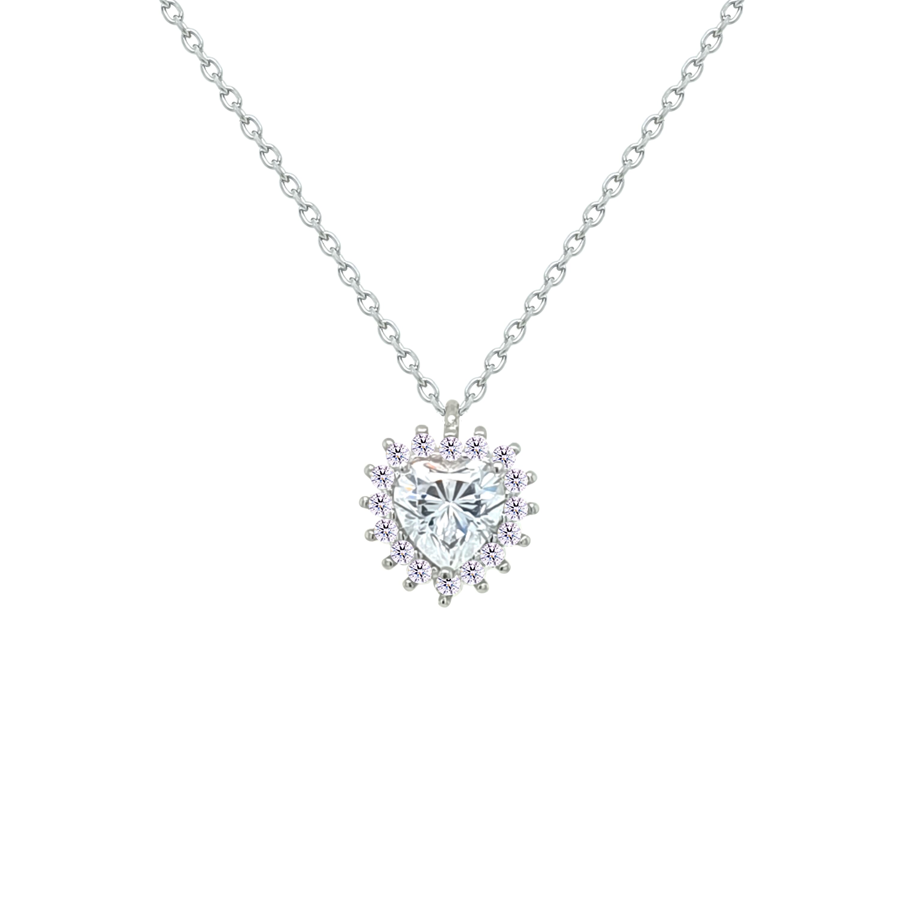 Asfour Crystal Chain Necklace With Heart Pendant In 925 Sterling Silver-NM0088
