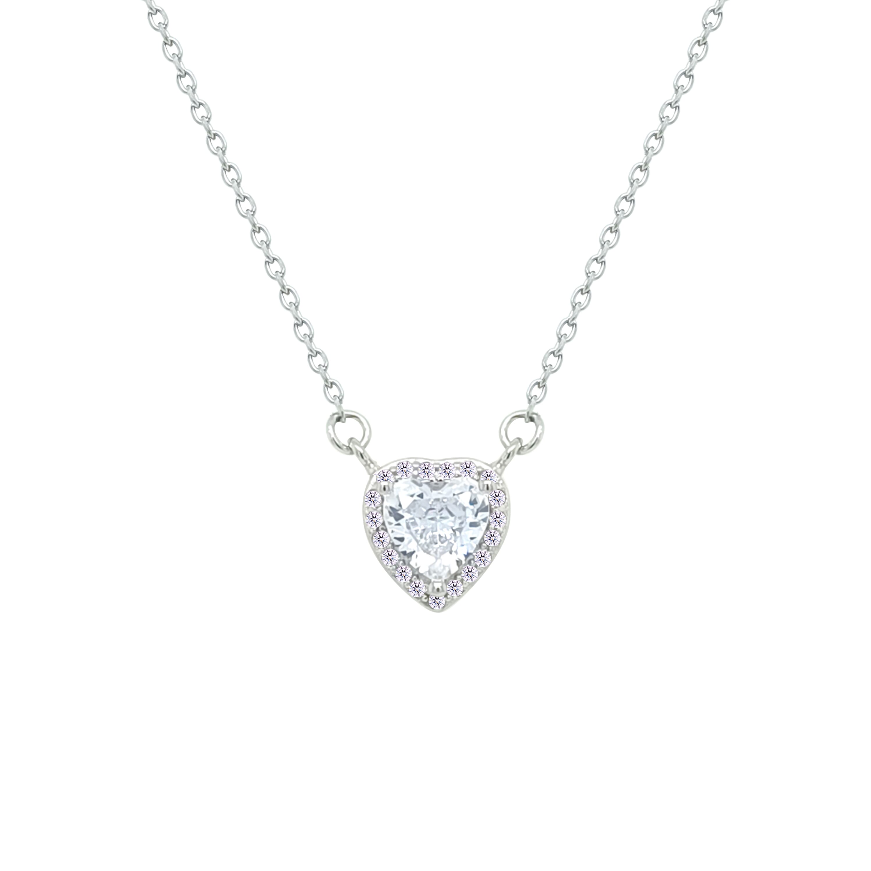 Asfour Crystal Chain Necklace With Heart Pendant In 925 Sterling Silver-NM0089