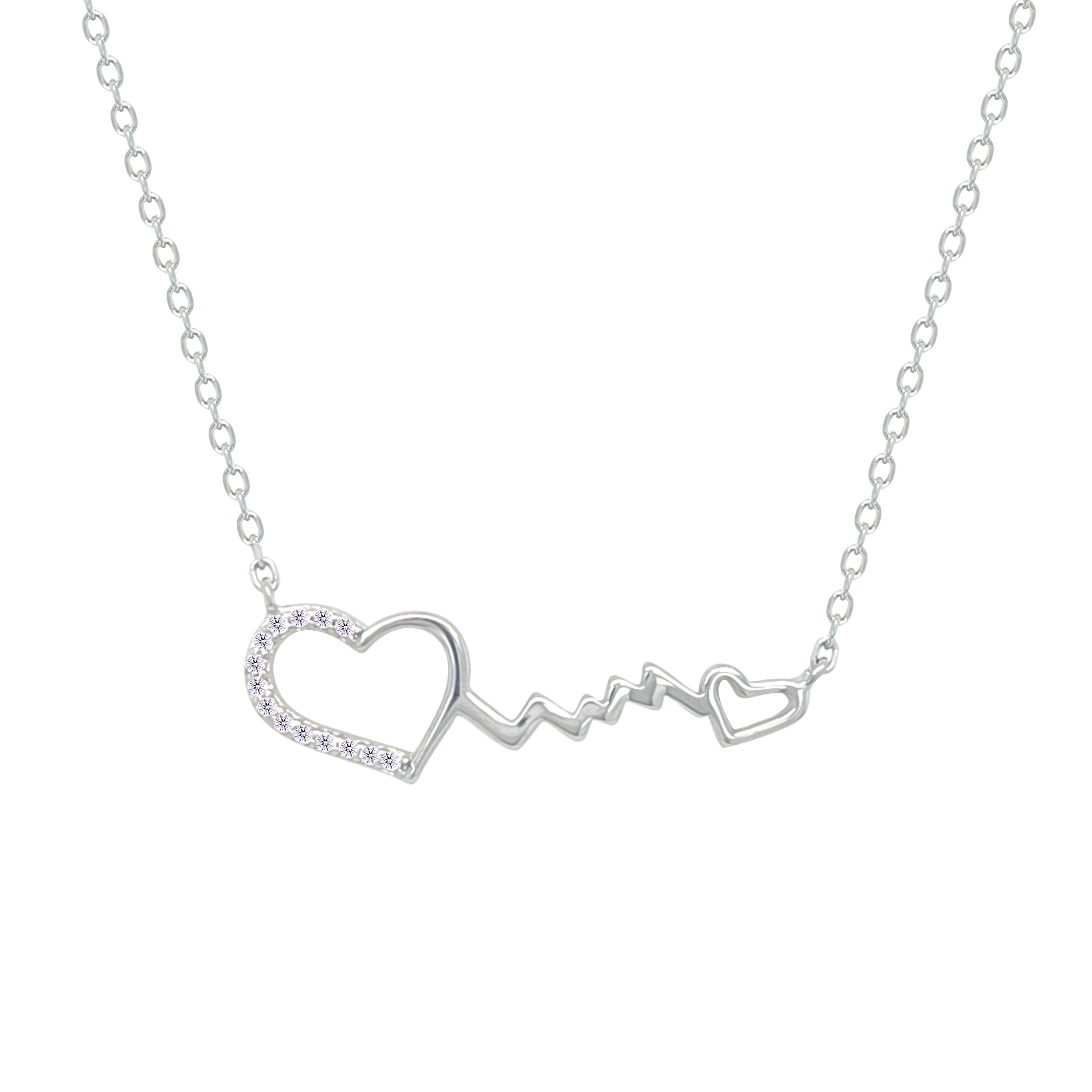 Asfour Crystal Chain Necklace With Hearts & Heartbeat Pendant In 925 Sterling Silver-NM0081
