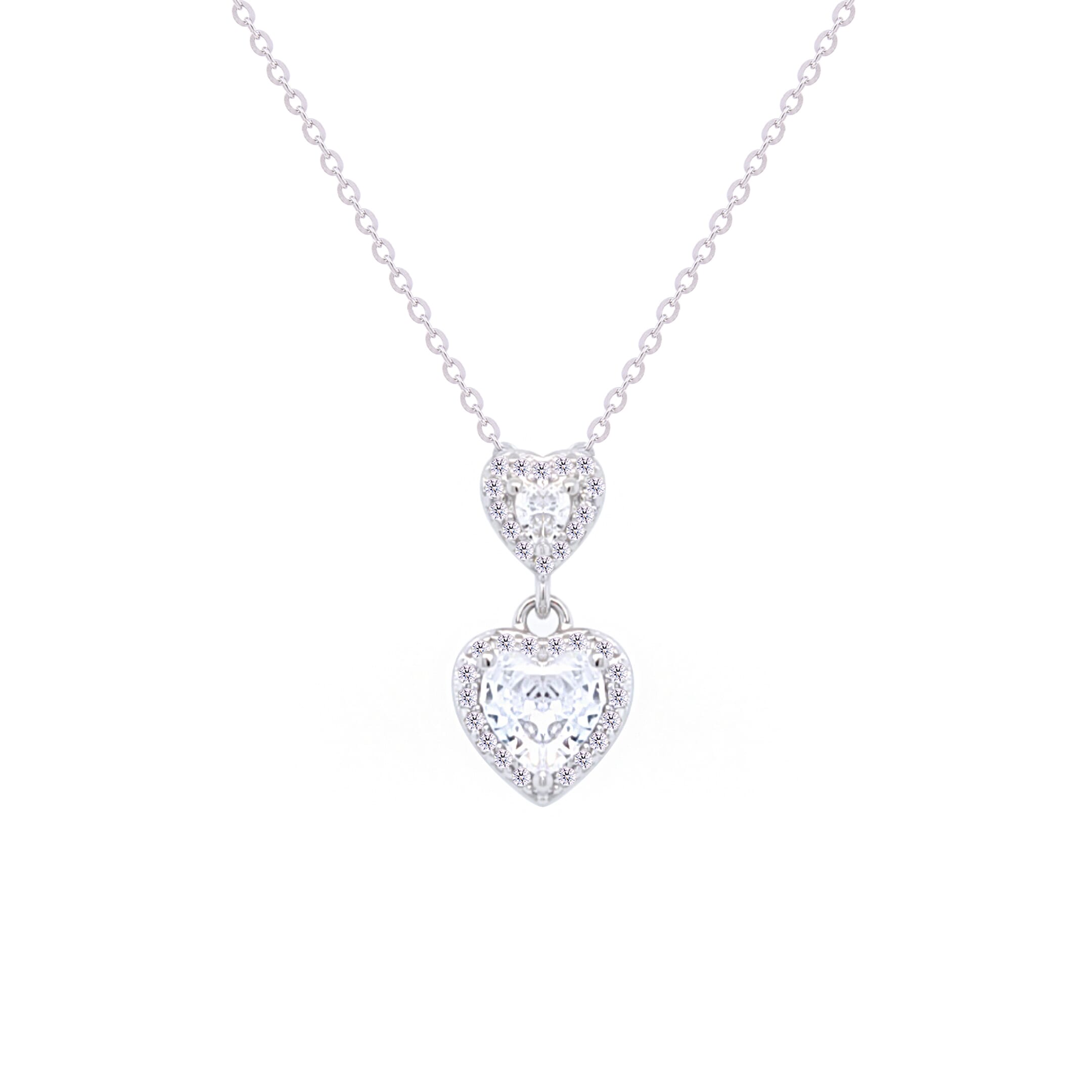 Asfour Crystal Chain Necklace With Hearts Pendant In 925 Sterling Silver-ND0402