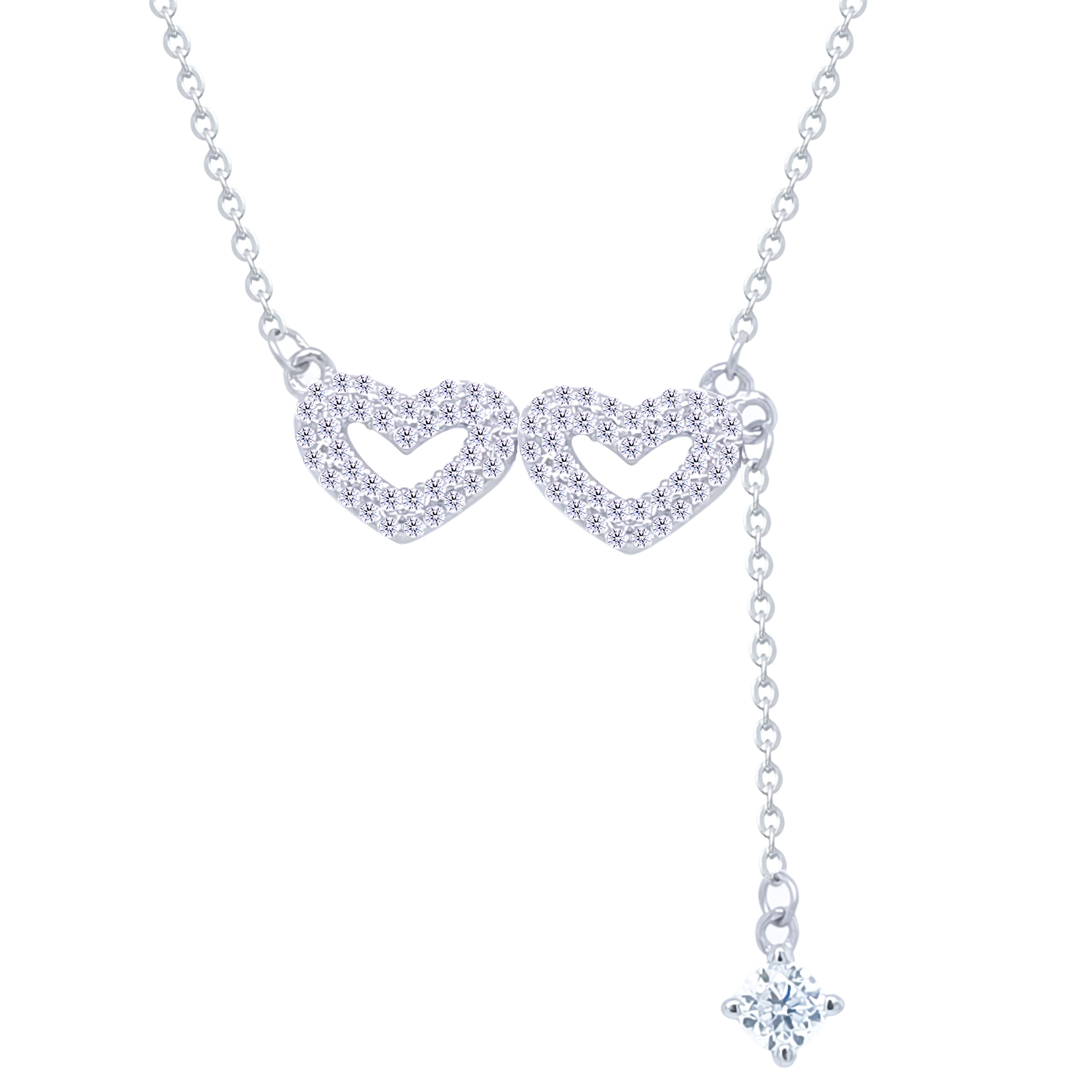 Asfour Crystal Chain Necklace With Hearts Pendant In 925 Sterling Silver-ND0529