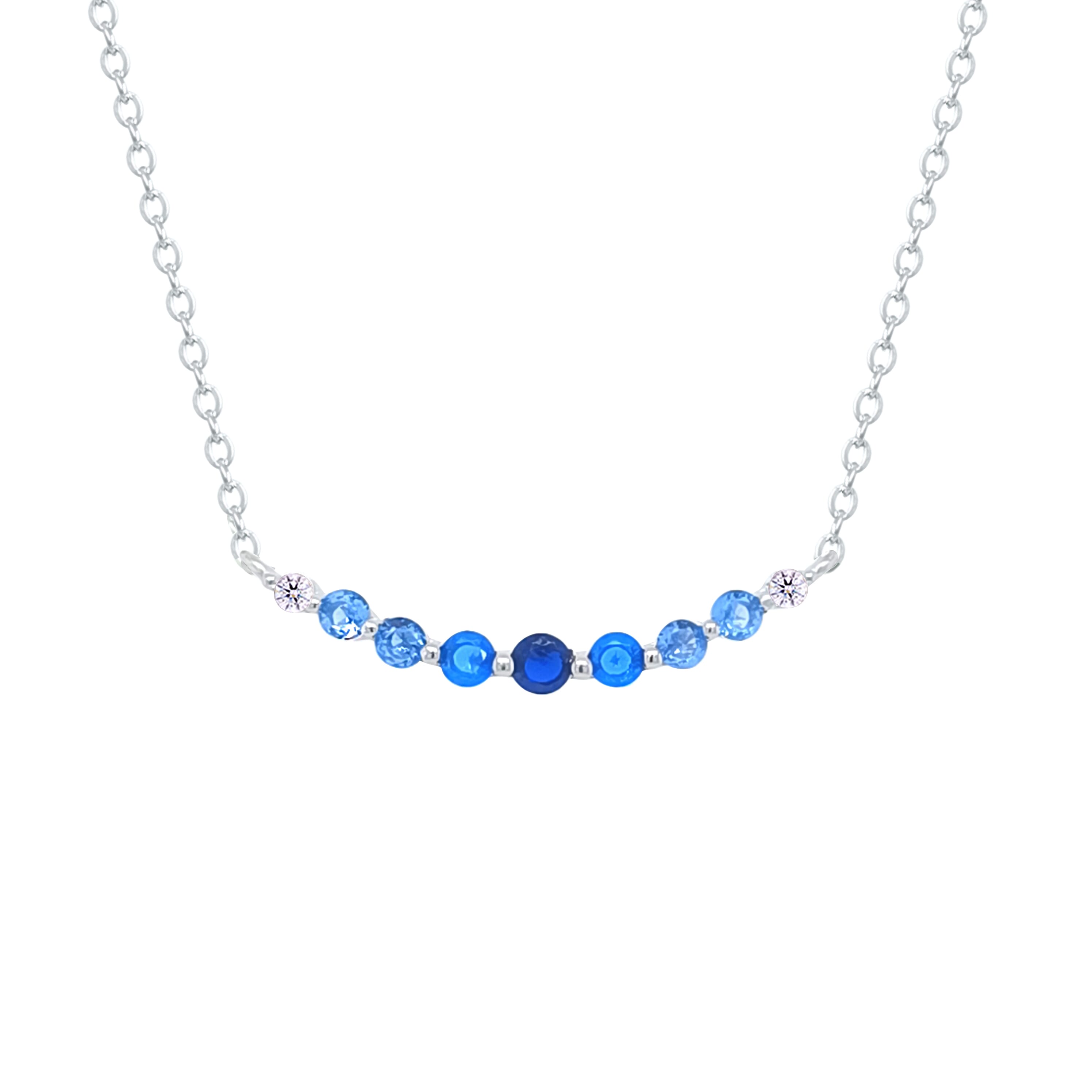 Asfour Crystal Chain Necklace With Light & Dark Aqumarine Zircon In 925 Sterling Silver-NM0106-MXLM