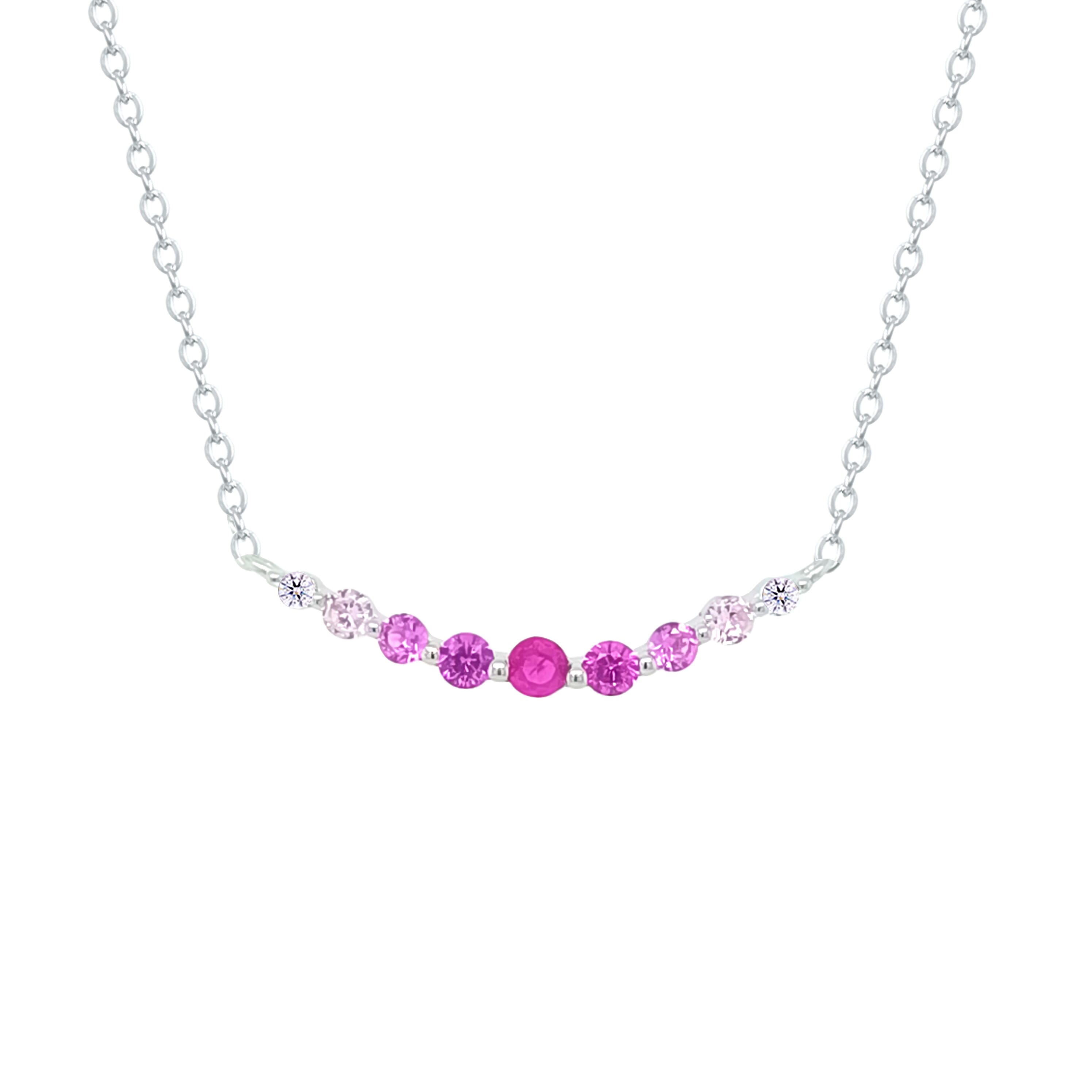 Asfour Crystal Chain Necklace With Light & Dark Fuchsia Zircon In 925 Sterling Silver-NM0106-FO