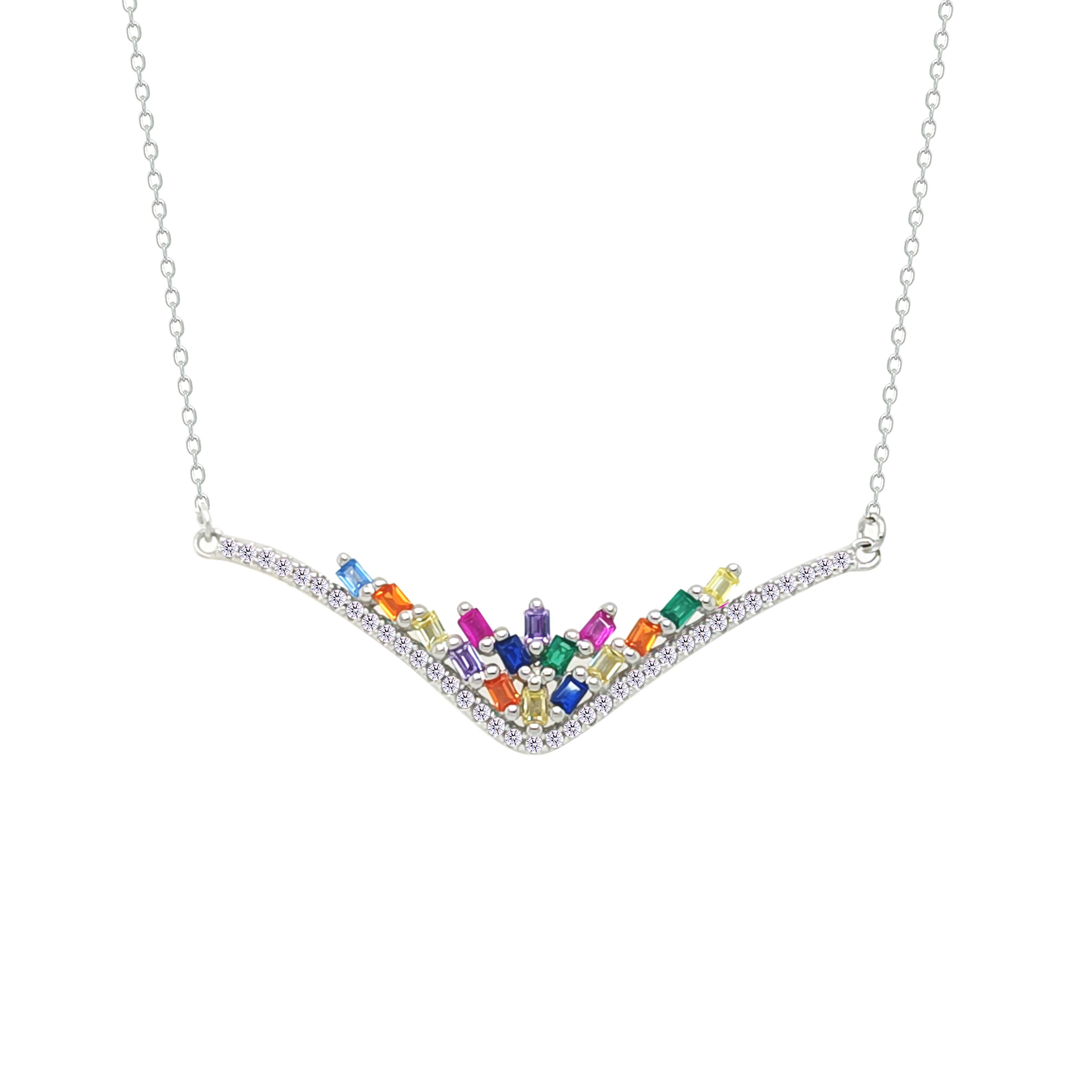 Asfour Crystal Chain Necklace With Multi Color Deer Antlers Design In 925 Sterling Silver-NM0101-K