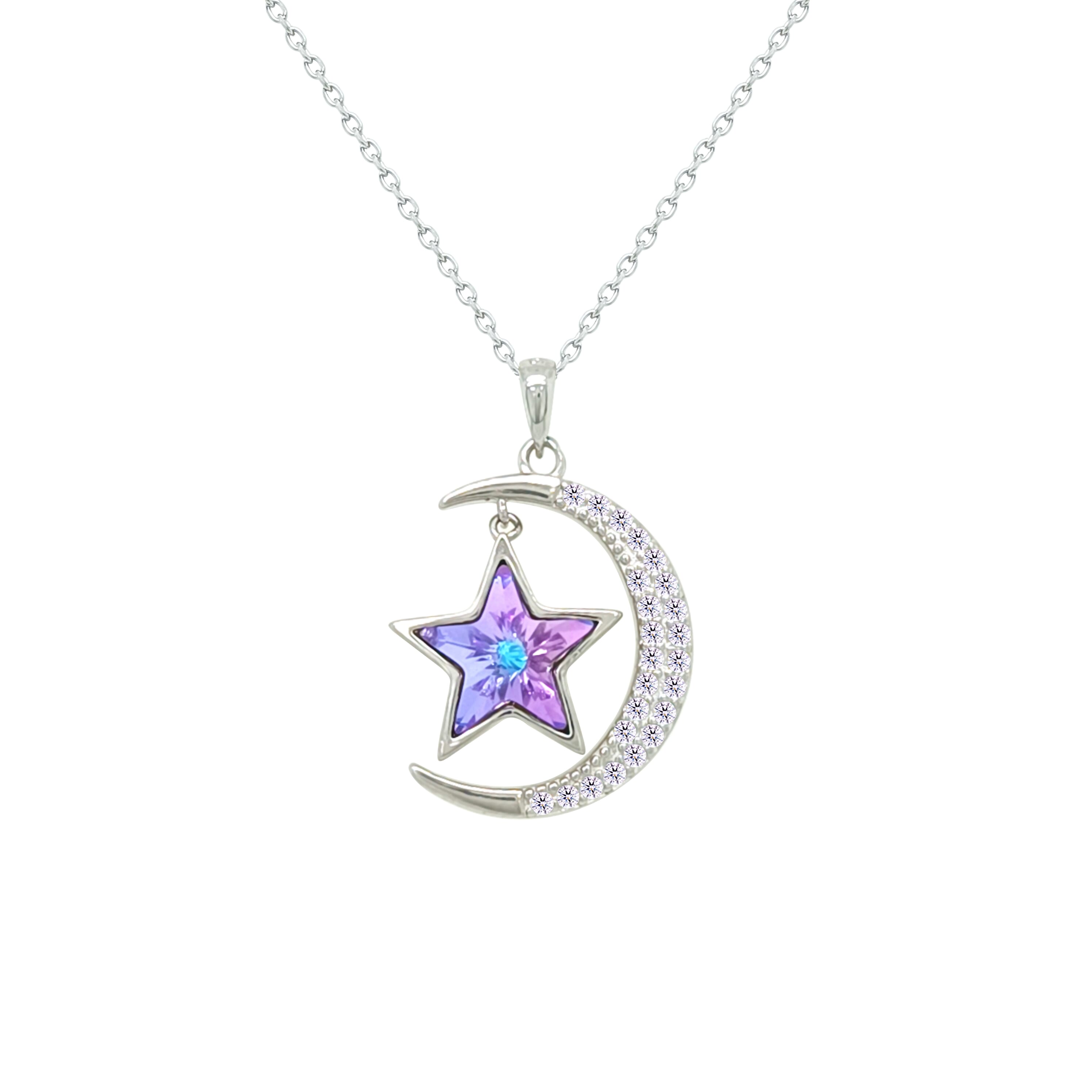 Asfour Crystal Chain Necklace With Muti Color Crescent & Star Design In 925 Sterling Silver-NM0093-WXBN