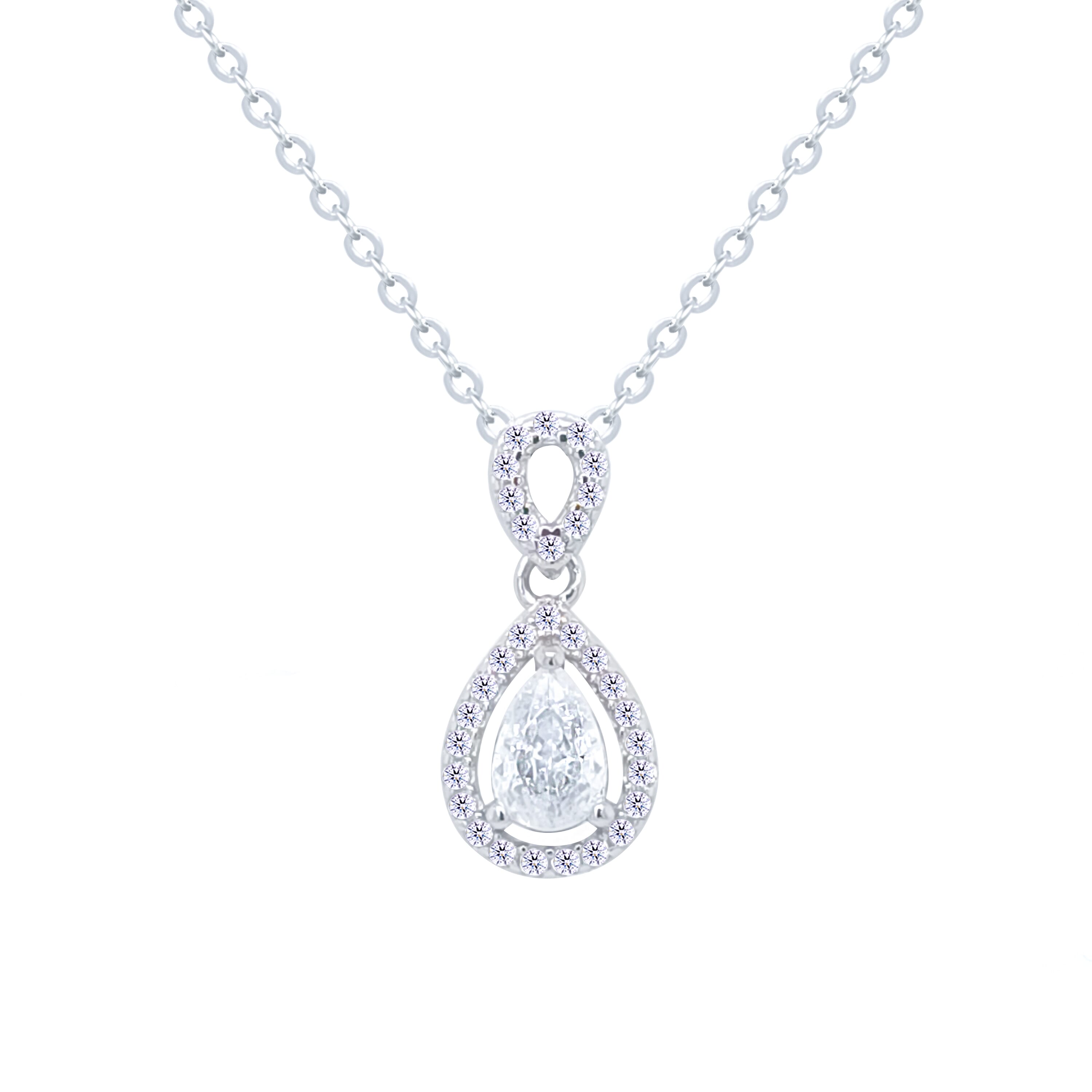 Asfour Crystal Chain Necklace With Pear Pendant In 925 Sterling Silver-ND0544