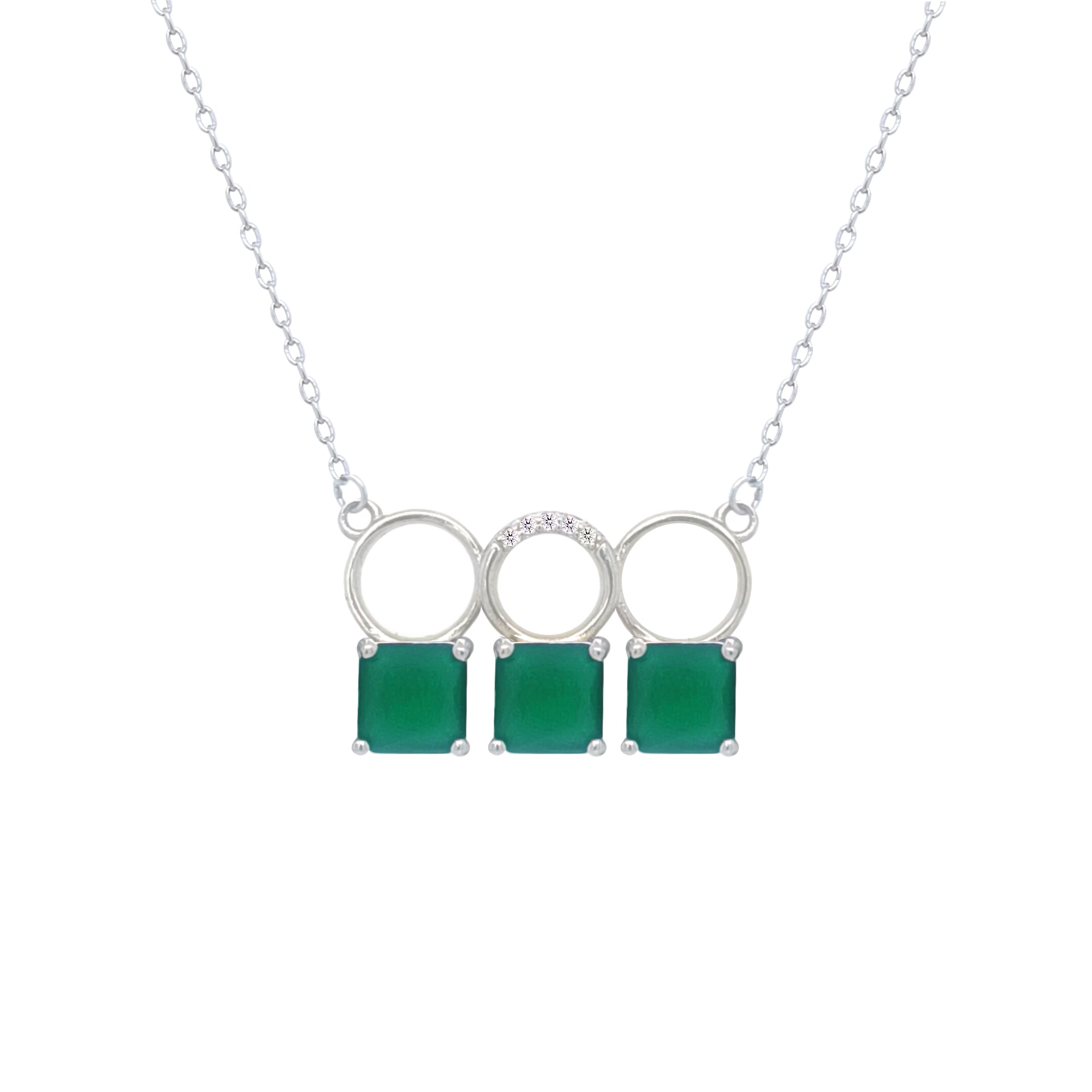 Asfour Crystal Chain Necklace With Three Emerald Square Design In 925 Sterling Silver-ND0445-G
