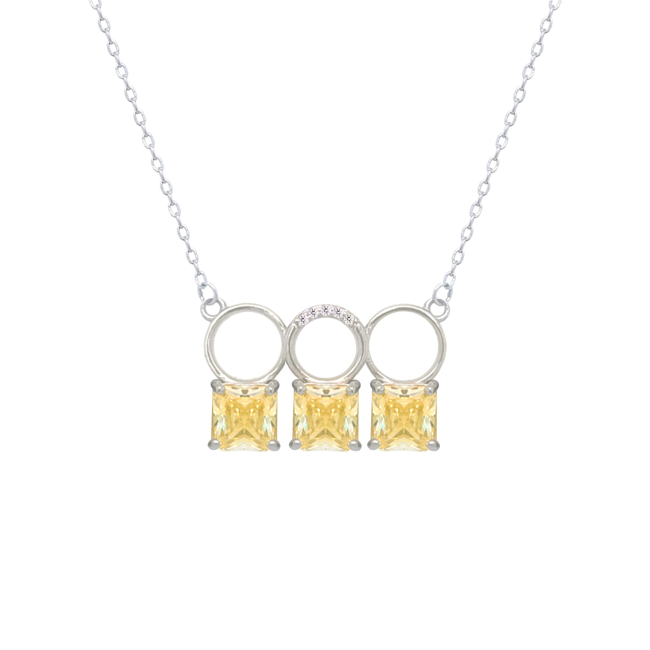 Asfour Crystal Chain Necklace With Three Yellow Square Design In 925 Sterling Silver-ND0445-Y