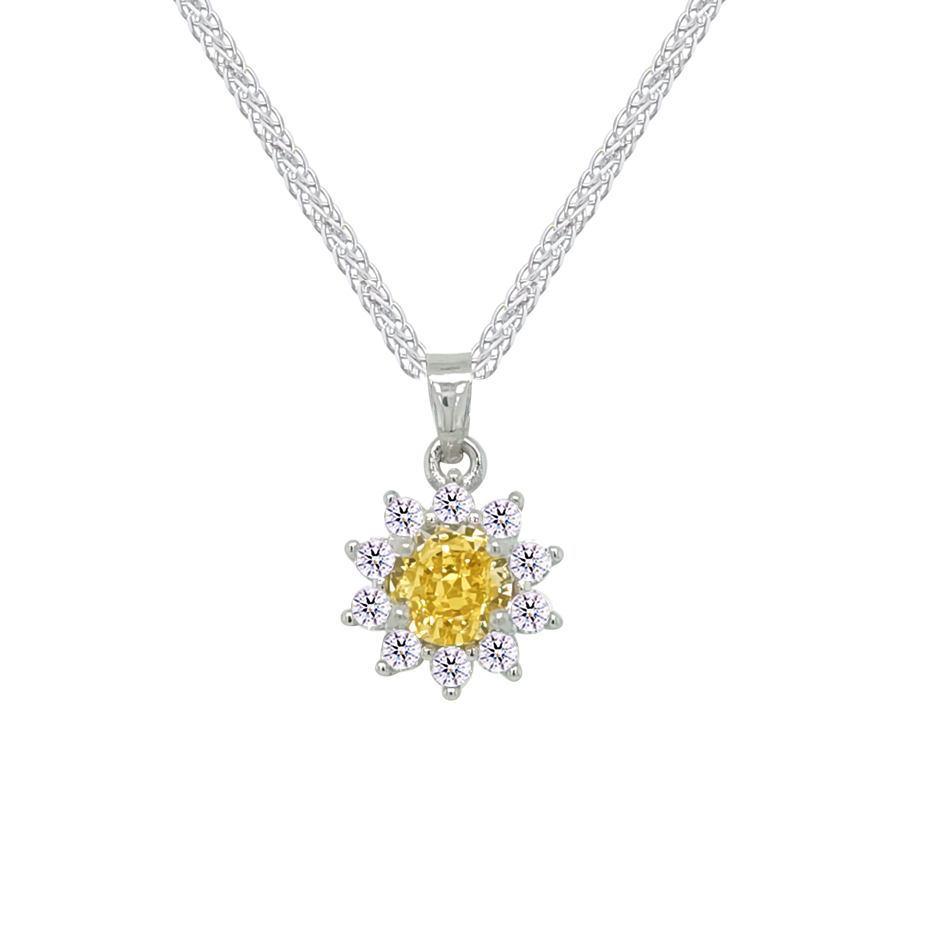 Asfour Crystal Chain Necklace With Yellow Flower Design In 925 Sterling Silver-ND0562-Y