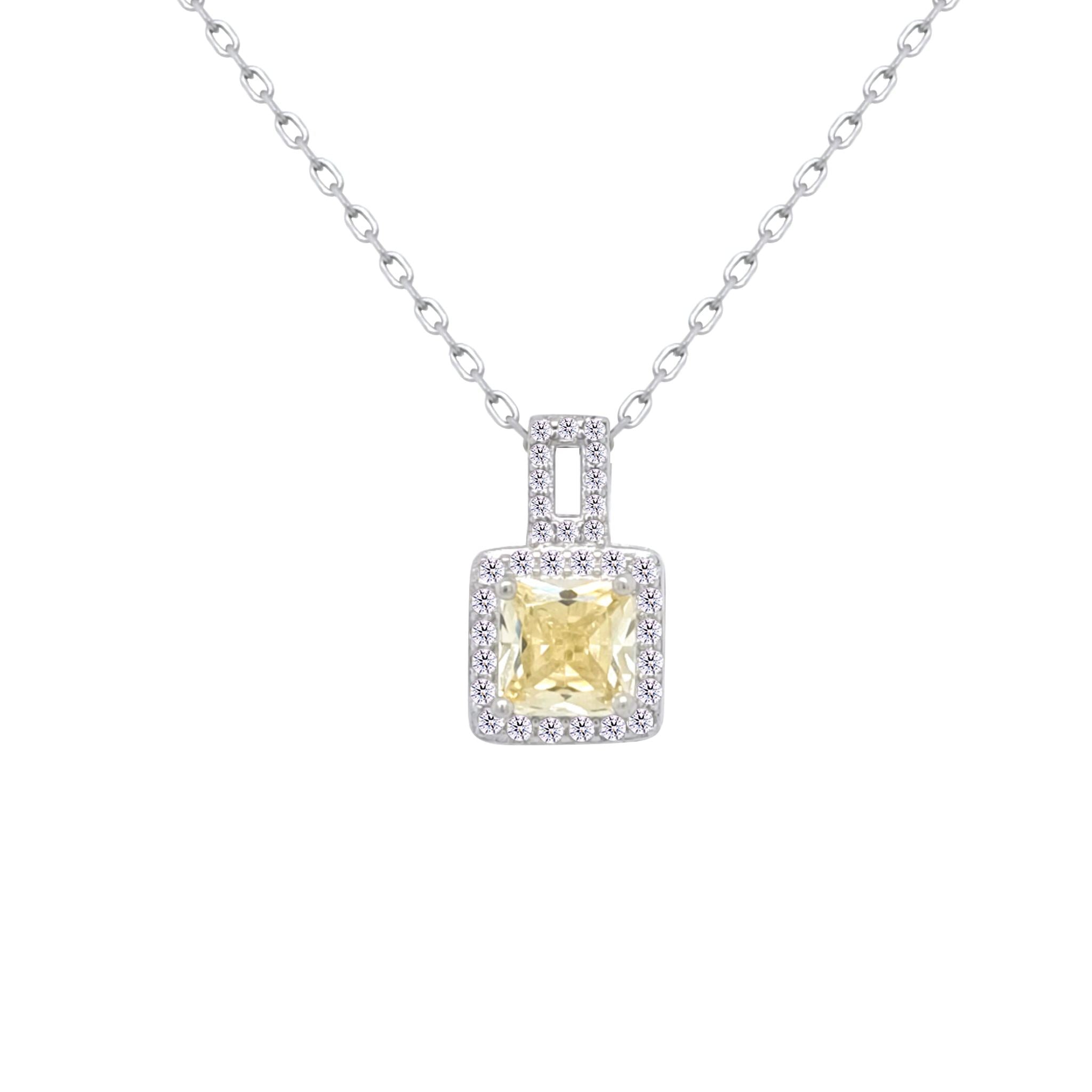 Asfour Crystal Chain Necklace With Yellow Square Pendant In 925 Sterling Silver-ND0450-Y