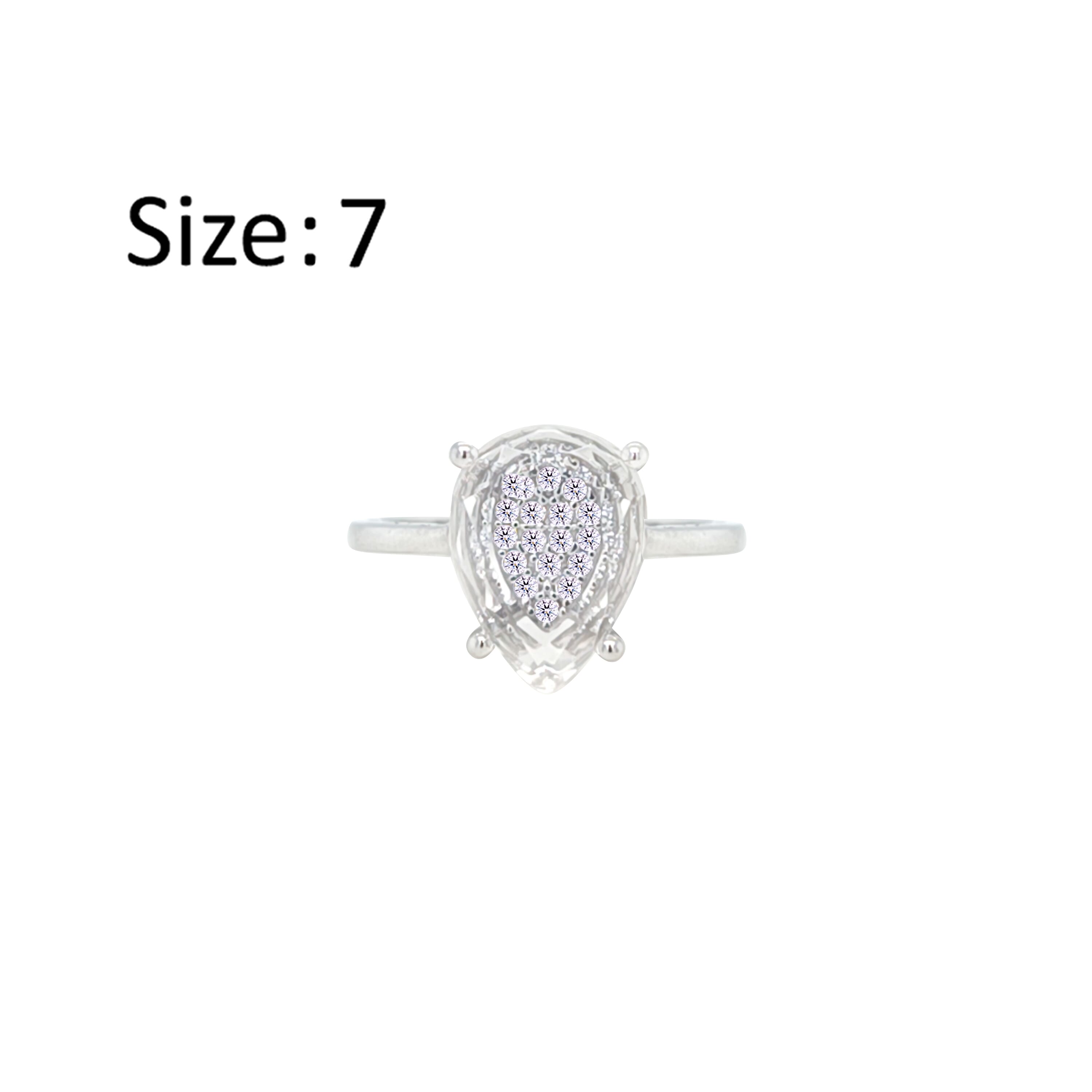 Asfour Crystal Drew Ring With Glass Pear Design Inlaid With Zircon In 925 Sterling Silver-RM0130-7