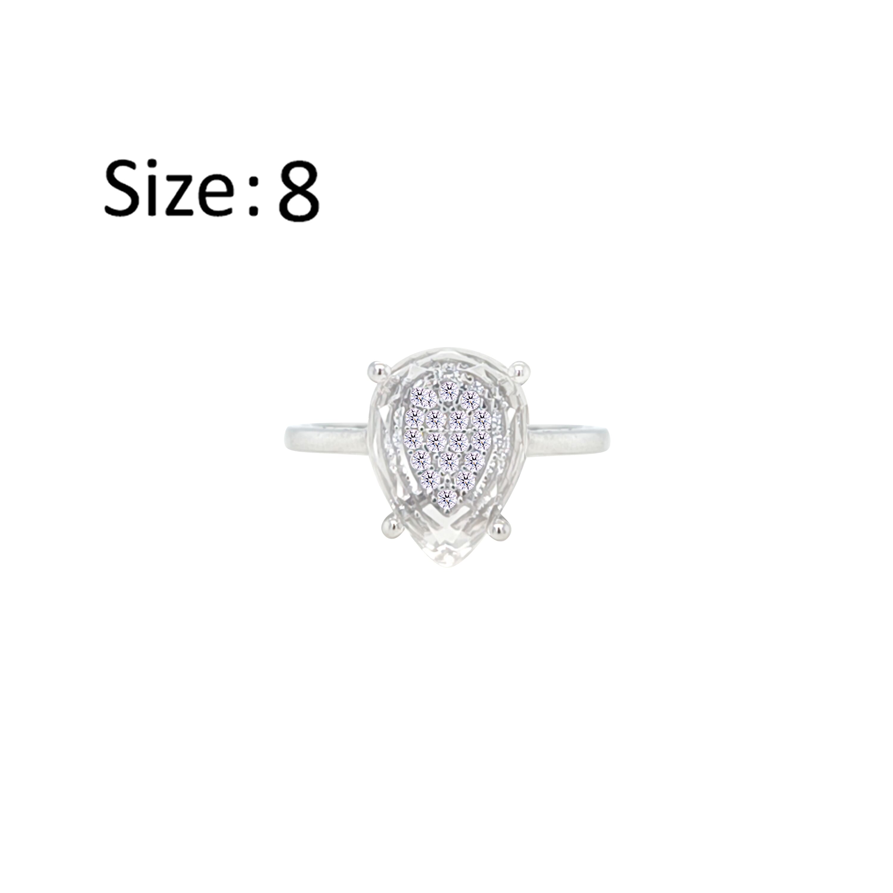 Asfour Crystal Drew Ring With Glass Pear Design Inlaid With Zircon In 925 Sterling Silver-RM0130-8