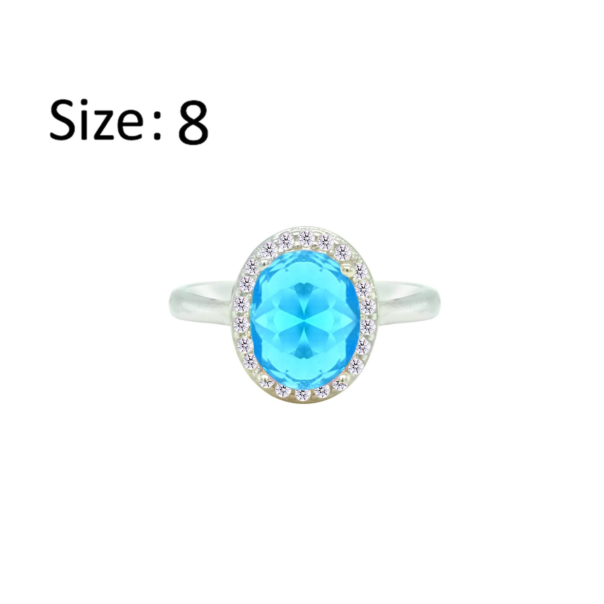 Asfour Crystal Drew Ring With Halo Aquamarine Oval Design In 925 Sterling Silver-RD0211-M-8