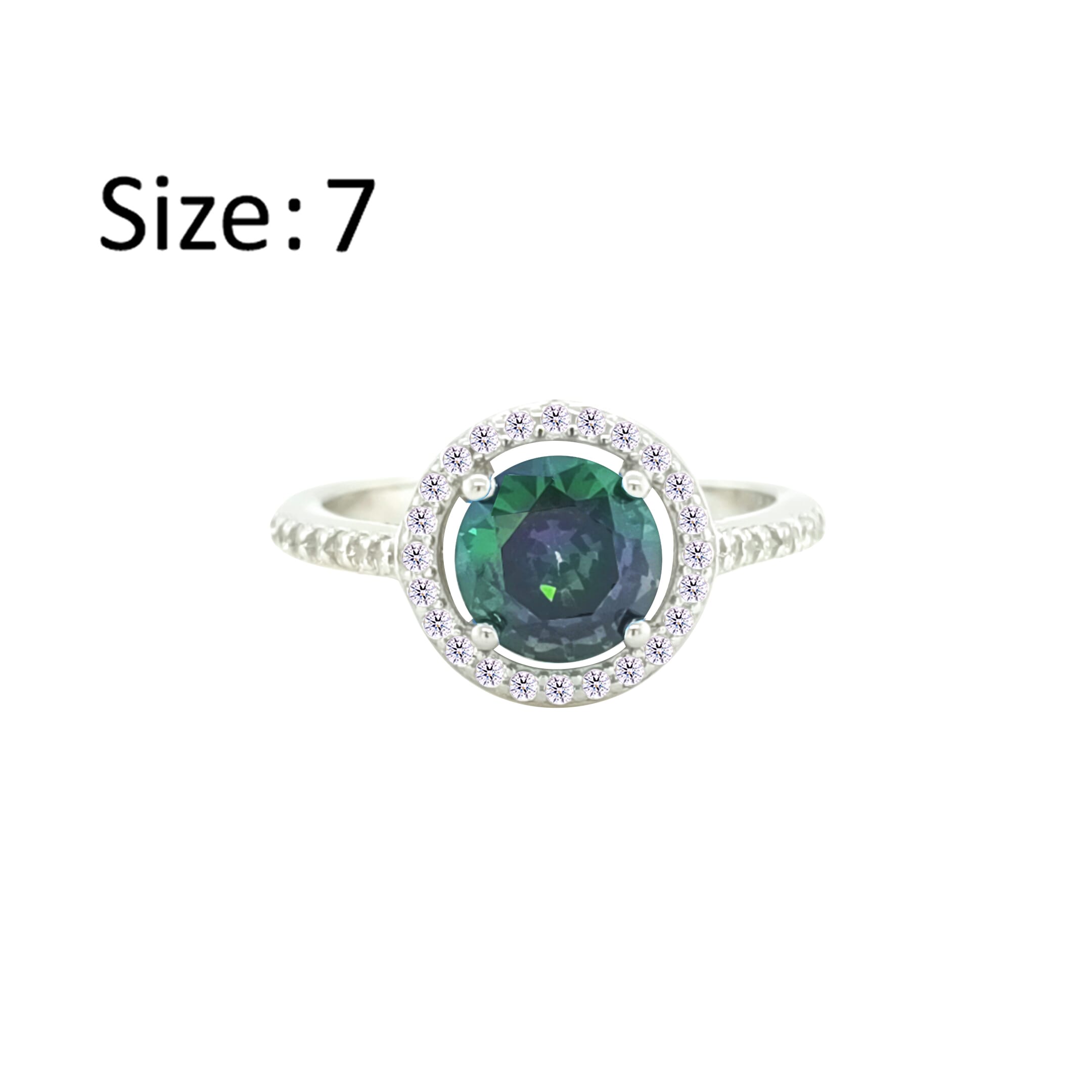 Asfour Crystal Drew Ring With Halo Multi Color Round Design In 925 Sterling Silver-RD0208-AP-7