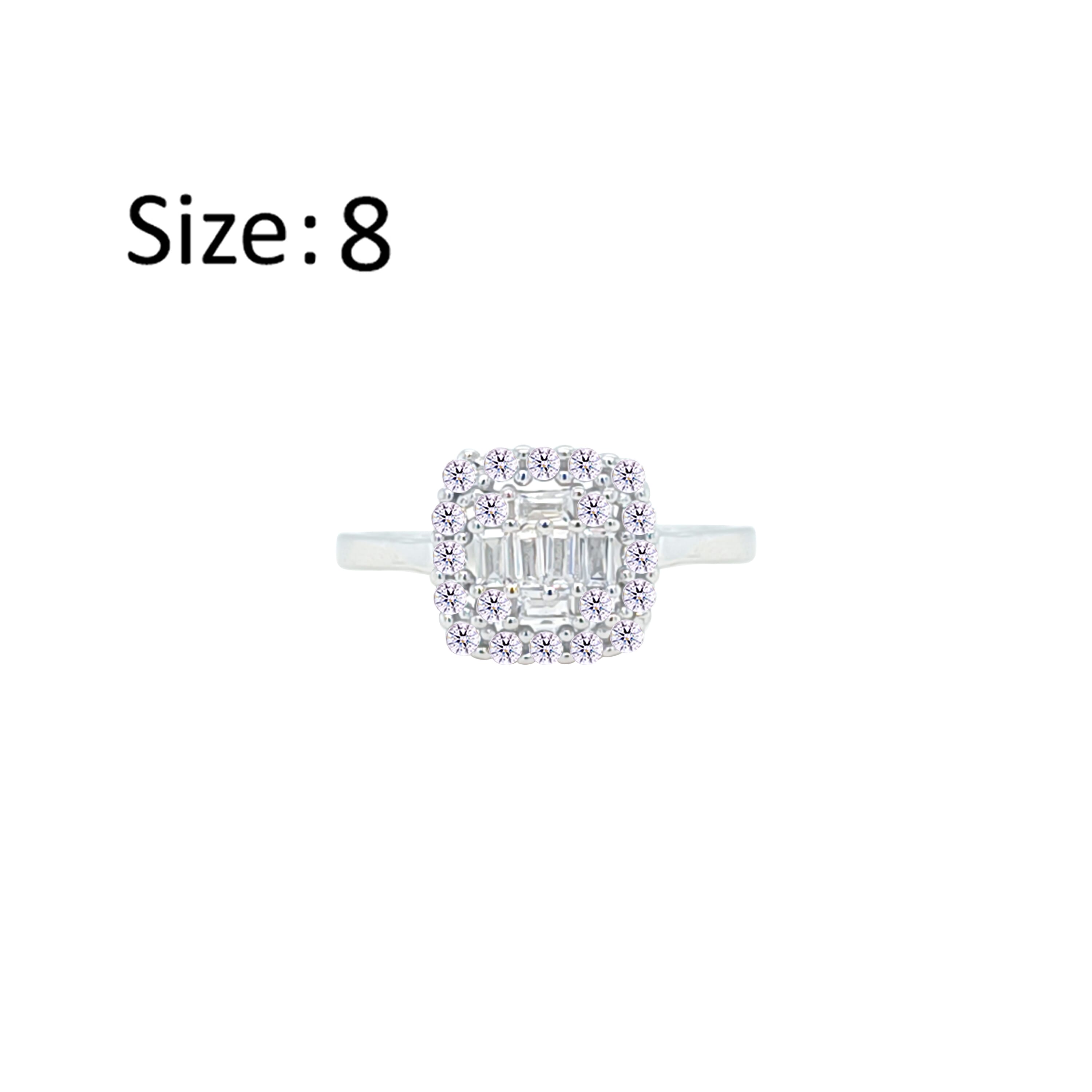 Asfour Crystal Drew Ring With Square Design Inlaid With Zircon In 925 Sterling Silver-RM0122-8