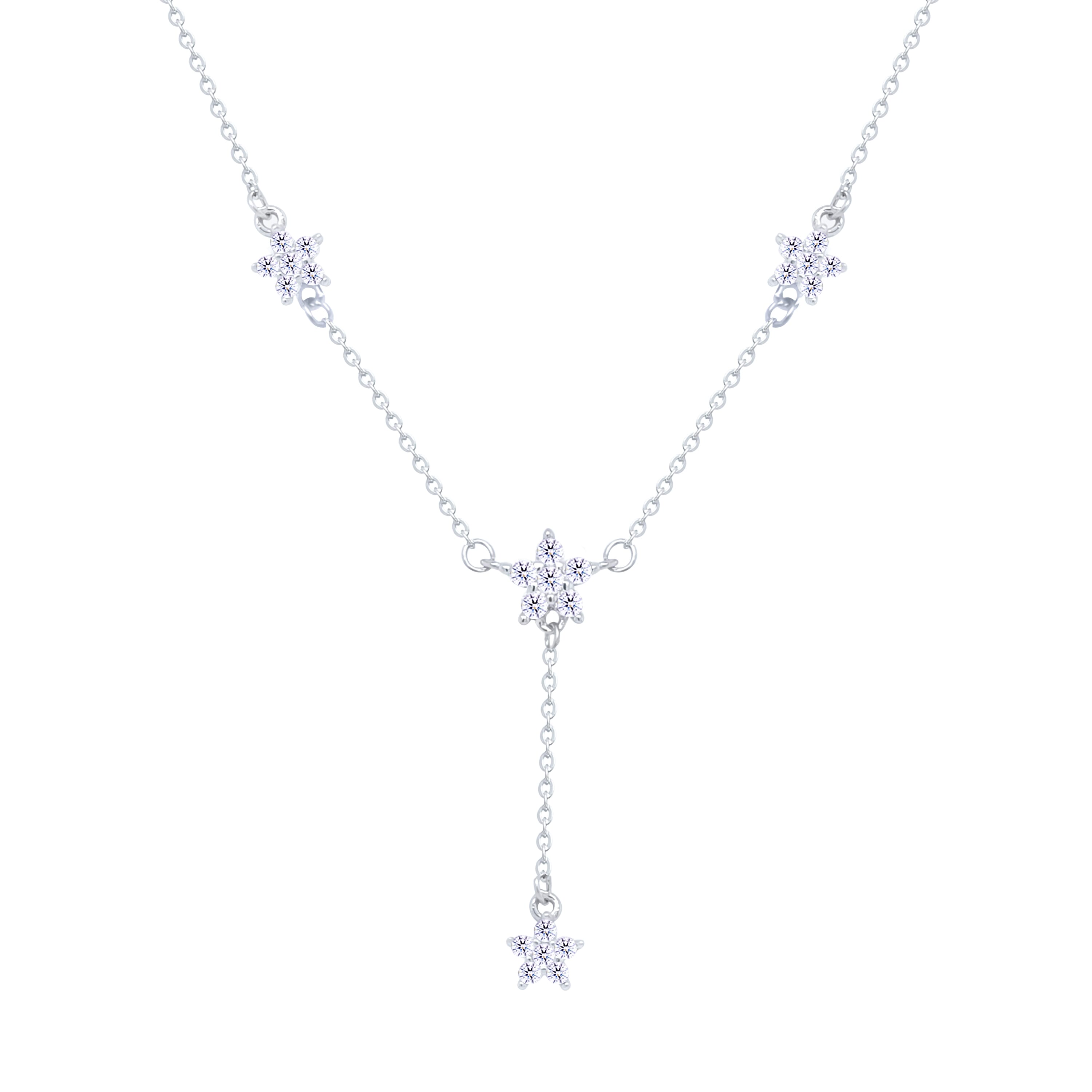 Asfour Crystal Drop Chain Necklace With Flower Design In 925 Sterling Silver-ND0534